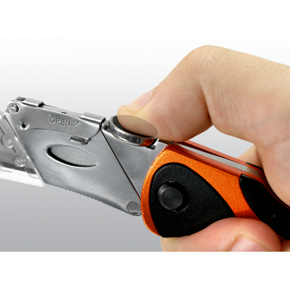 Športový, skladací, úžitkový nož s hliníkovou rukoväťou.