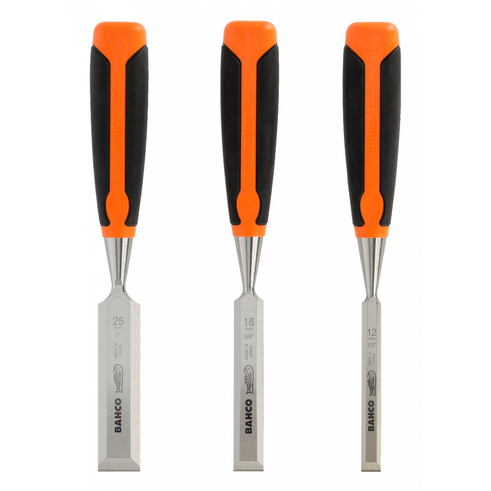 Sada profesionálnych dlát s 2-zložkovou rukoväťou, 3 ks, v kartónovom obale.