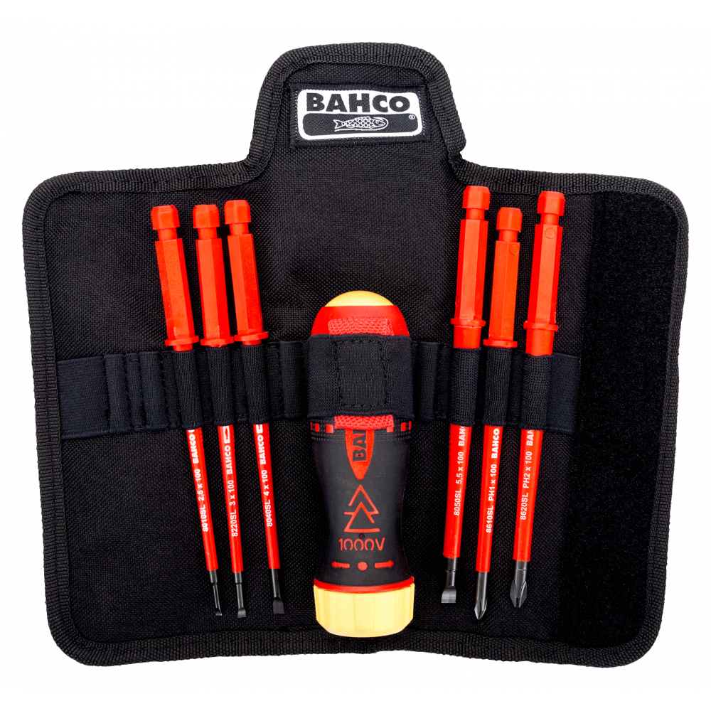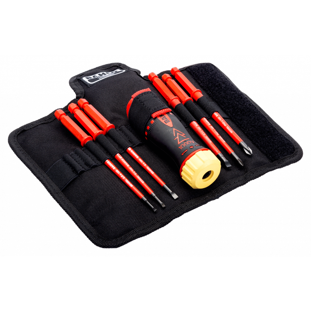 Sada 6 ks izolovaných 1000 V račňových skrutkovačov na vymeniteľné stopky/čepele.