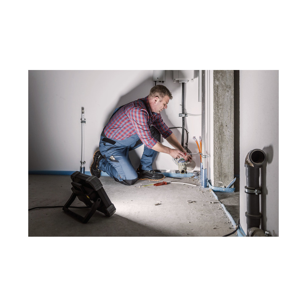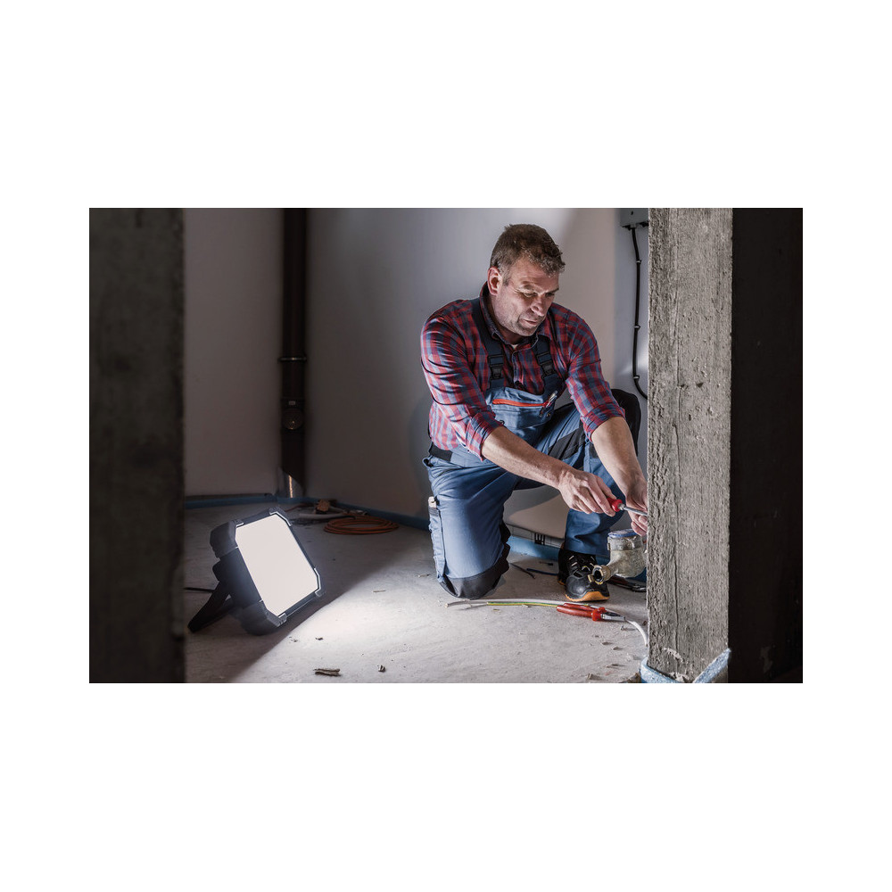 Mobilný pracovný LED reflektor DINORA 5050 od spoločnosti Brennenstuhl je prenosný LED reflektor s krytom z plastu odolného proti rozbitiu a nárazu a s dodatočnou ochranou hrán. Stavebný reflektor LED je vhodný na použitie v interiéri aj exteriéri a dá sa jednoducho ovládať pomocou podsvieteného vypínača. Inštalované LED diódy SMD zaujmú výnimočne dlhou životnosťou a špeciálnym rozptylom svetla na veľkoplošné osvetlenie. Okrem toho pracovné svetlo presvedčí nasledujúcimi vlastnosťami: