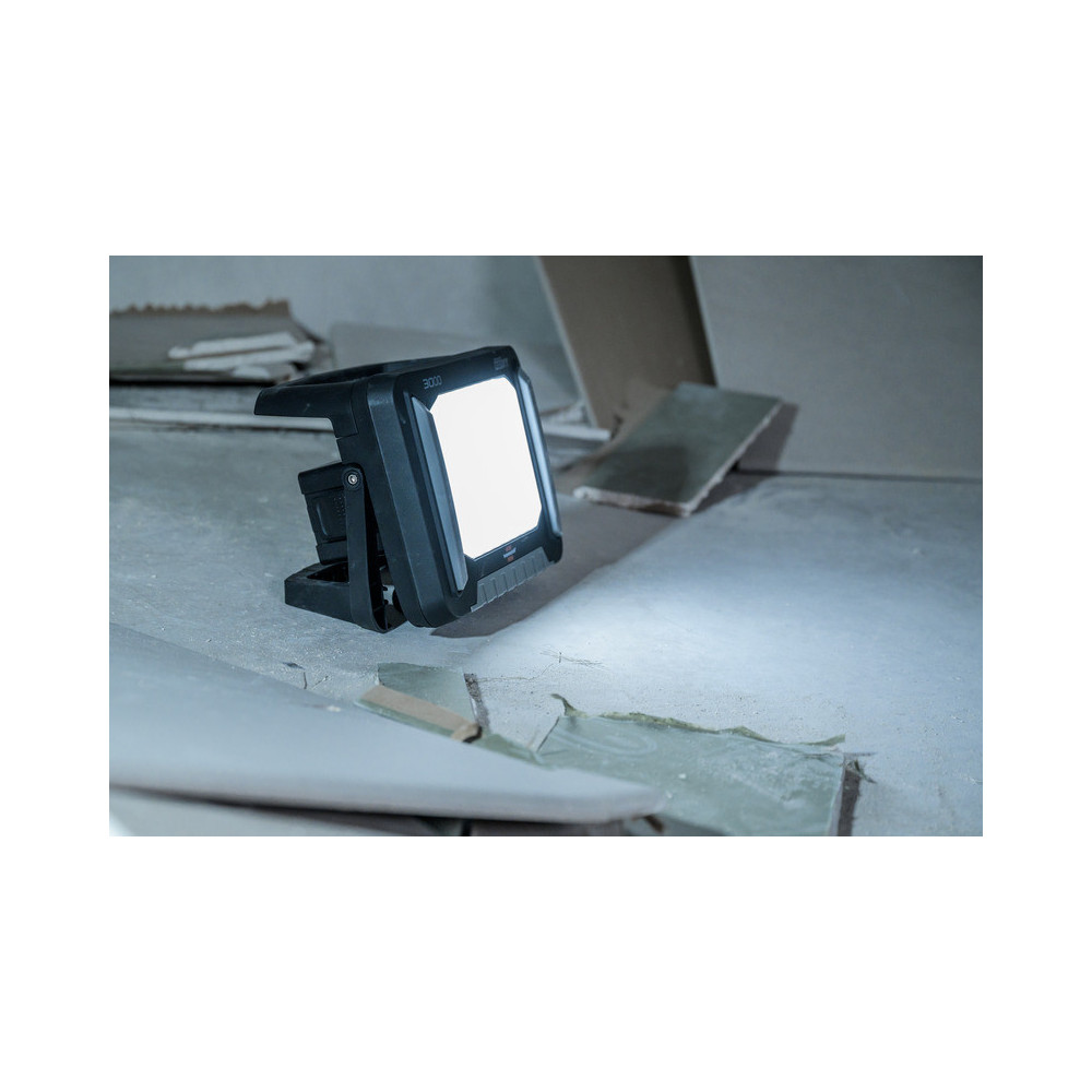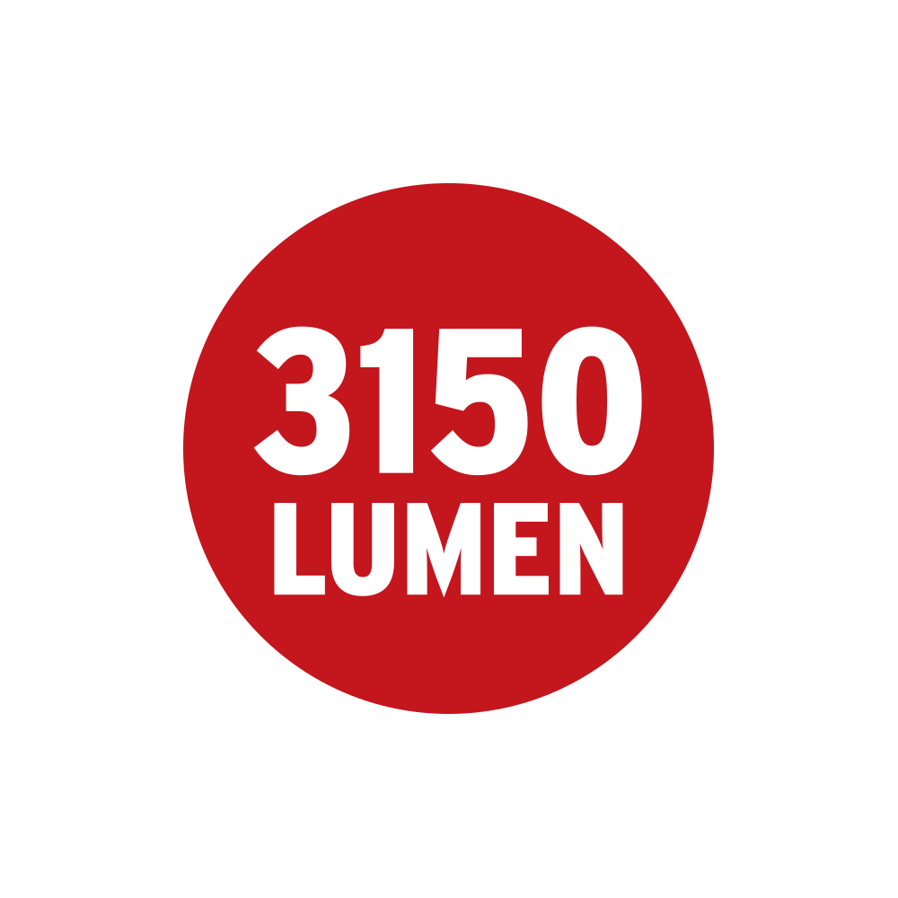 Reflektor s výkonom 3150 lm ponúka dobu svietenia približne 5 h/4Ah pri svetelnom výkone 50 % (približne 2,5 h/4Ah pri 100 % svetelnom výkone) - doba svietenia závisí od použitej dobíjacej batérie (dodávka bez dobíjacej batérie)