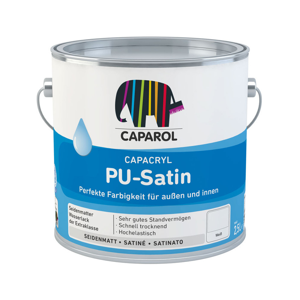 Caparol Capacryl PU - Satin je kvalitný polyuretánové akrylový lak, odolný proti poškriabaniu a úderom, do vonkajších i vnútorných priestorov.