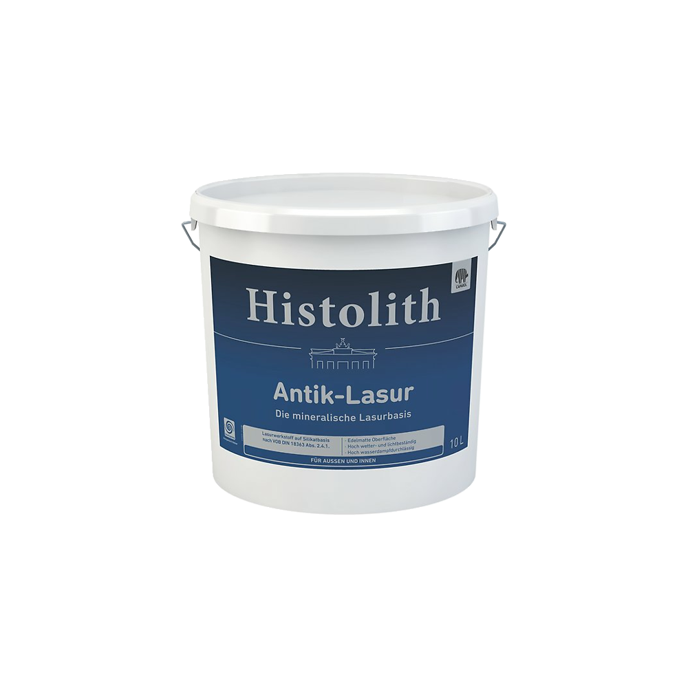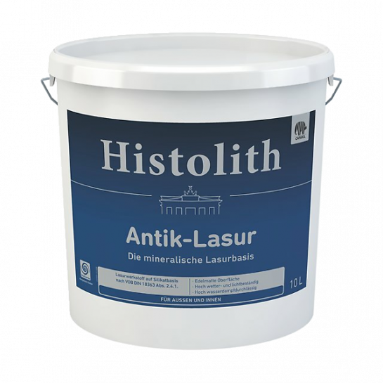 Histolith Antik Lasur je lazúrovací koncentrát na vytváranie dekoratívnych lazúrovacích náterov podľa vzoru historických náterov. Okrem iného je vhodný aj na štruktúru zachovávajúce lazúrovacie nátery prírodného kameňa.