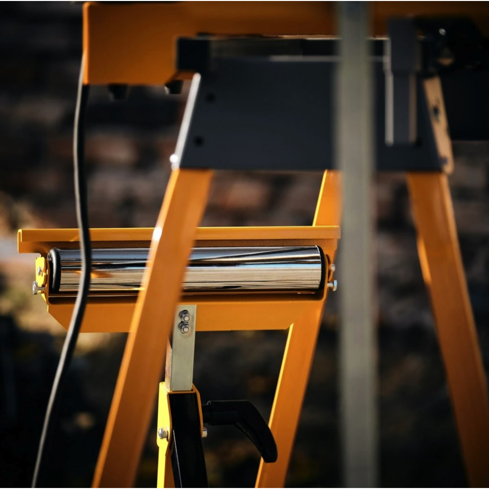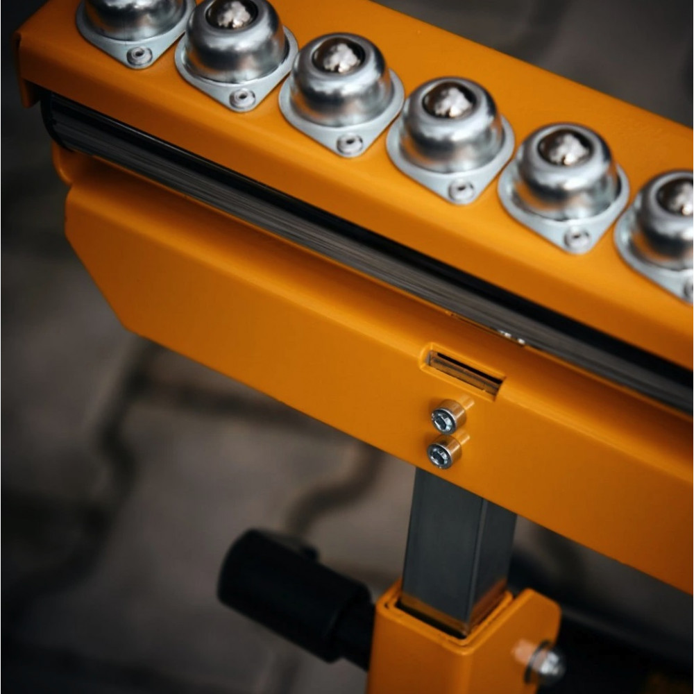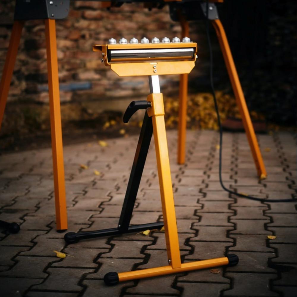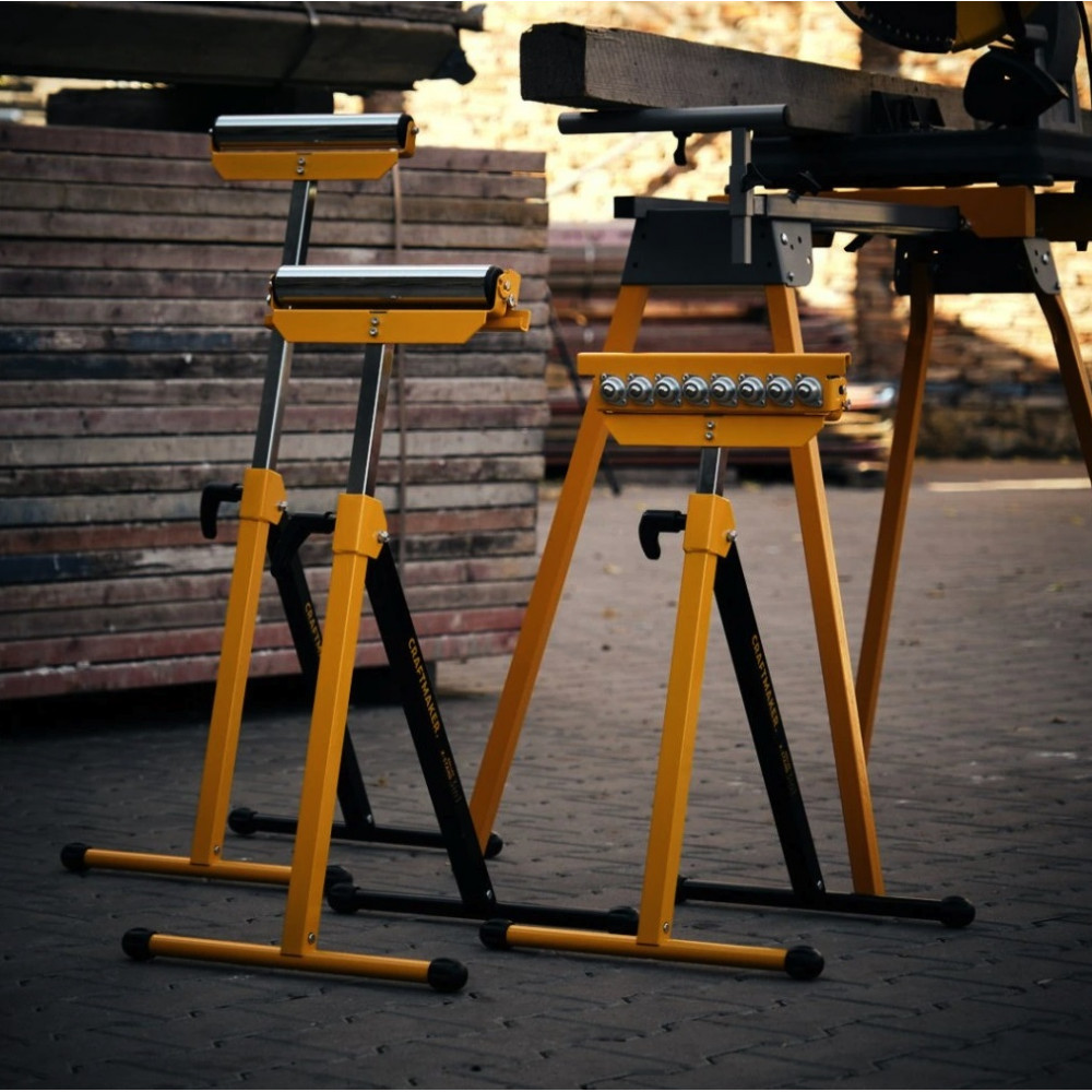 Rolovací stojan CRAFTMAKER® využijete všade tam, kde je potrebné pracovať s dlhým materiálom, ako sú napríklad oceľové rúrky, oceľové profily alebo drevené dosky a klády. Pochrómovaný oceľový valček vám umožní posúvať materiál bez akejkoľvek námahy a zaistí mu potrebnú stabilitu, rovnako tak guličková podpera. U niektorých projektov naopak oceníte stabilnú rovnú plochu, ktorá sa neotáča. Stolárska podpera je plne skladacia a nezaberie takmer žiadne miesto. Výška je nastaviteľná. Tento roller je primárne určený ako doplnok k pílovým stolom.