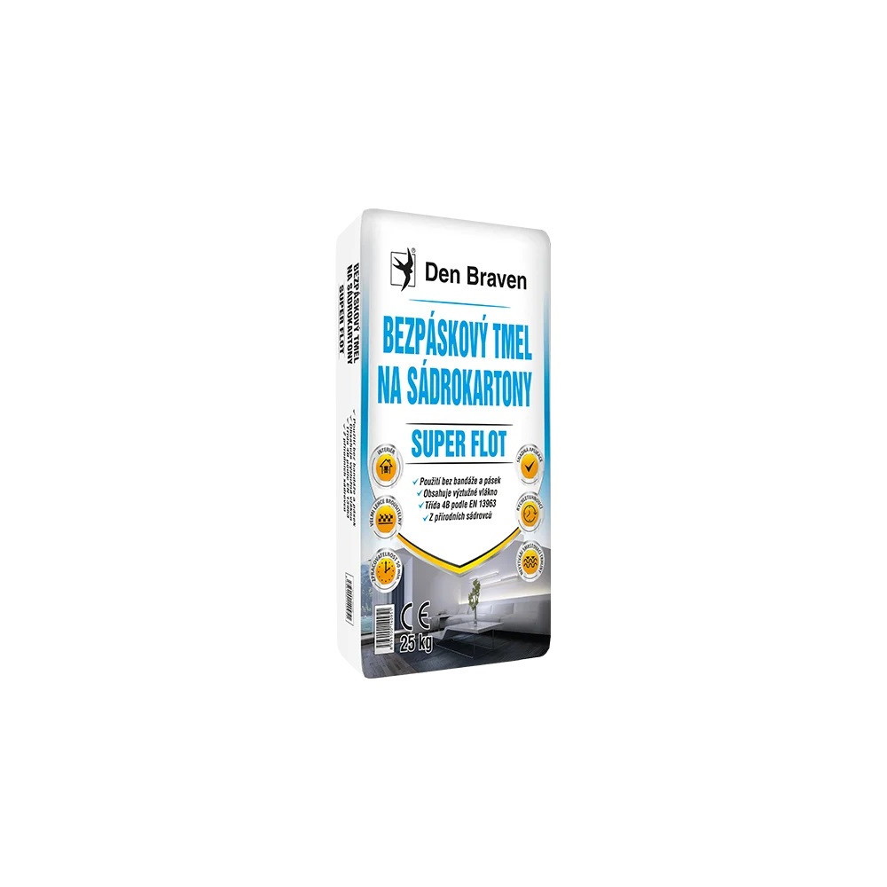 Bezpáskový tmel na sadrokartóny SUPER FLOT je pripravená, suchá, škárovacia hmota na báze sadry, vystužená vláknom, ktoré prináša efekt mikrostuženia, zvyšujúci odolnosť spoja. Predchádza tak tvorbe trhlín. Slúži na spájanie sadrokartónových a sadrovláknitých dosiek bez použitia bandáže alebo mriežky, vyrovnávanie nerovností v omietke a sadrokartónových konštrukciách a iných.