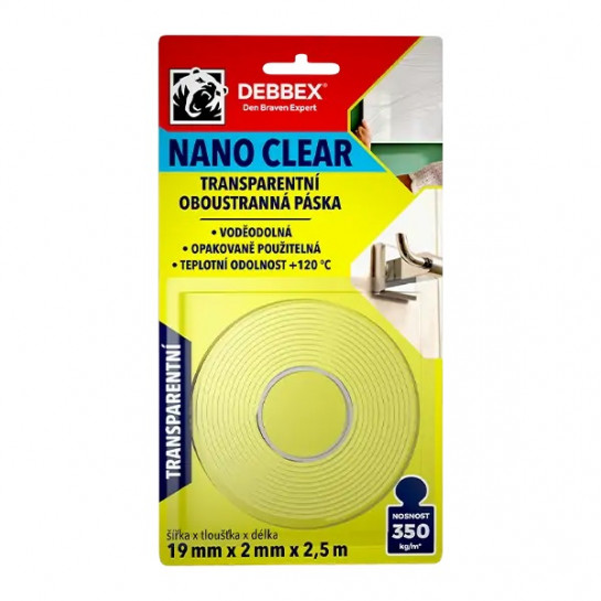 Transparentná obojstranná páska s extra hrubou špeciálnou lepiacou vrstvou. Vďaka jej priehľadnosti s ňou je možné lepiť aj číre predmety, a to dokonca aj vonku, pretože je UV odolná. Najväčším bonusom je znovupoužiteľnosť pásky. Keď po čase zistíte, že chcete mať poličky inde, tak ich pripevníte na nové miesto. Tiež s ňou prilepíte zrkadlá, sklá, štítky alebo dekorácie.