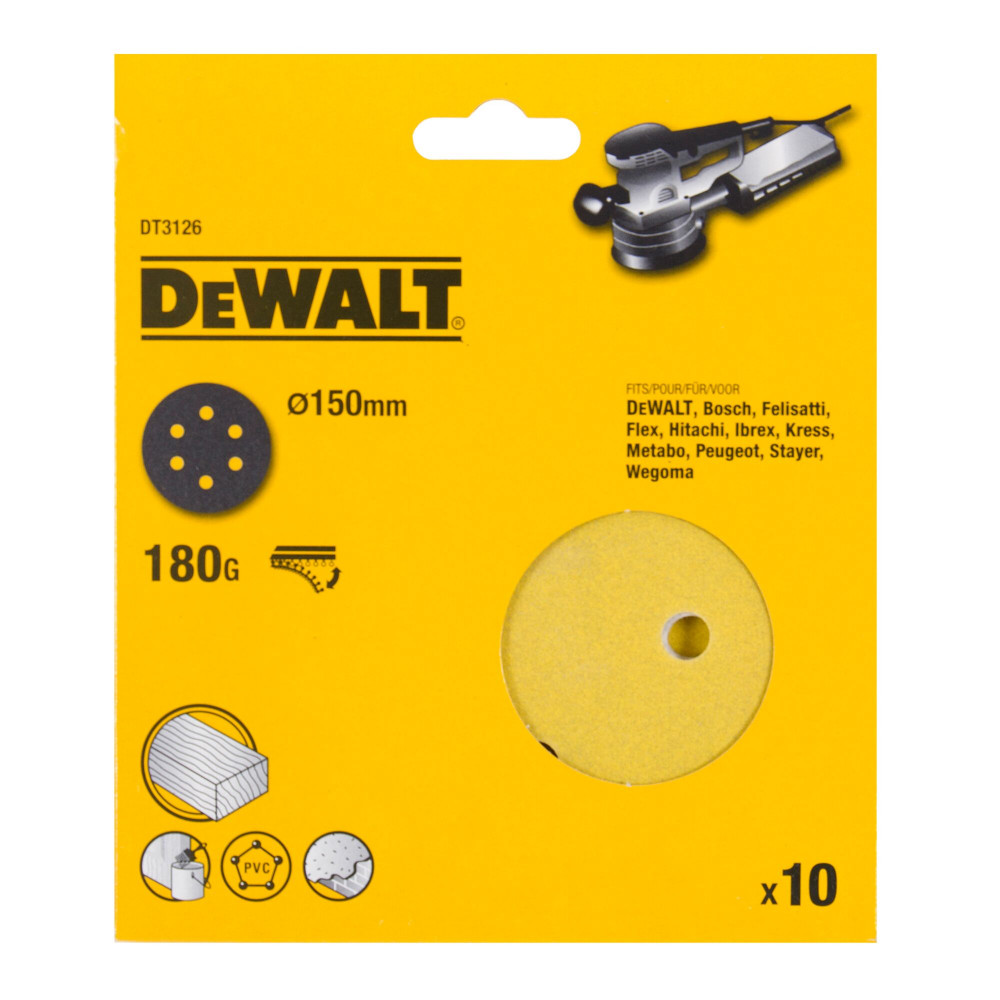 Papierové kotúče DEWALT Hoop & Loop s nepriľnavým stearátovým povlakom, ktorý minimalizuje lepenie a usadzovanie, sú vybavené zrnom oxidu hlinitého pre rýchle odstránenie materiálu a jemnú konečnú úpravu. Zadná strana so suchým zipsom ponúka rýchlu a jednoduchú výmenu papiera a špeciálne upravená podložka odoláva roztrhnutiu.