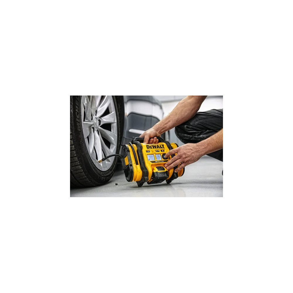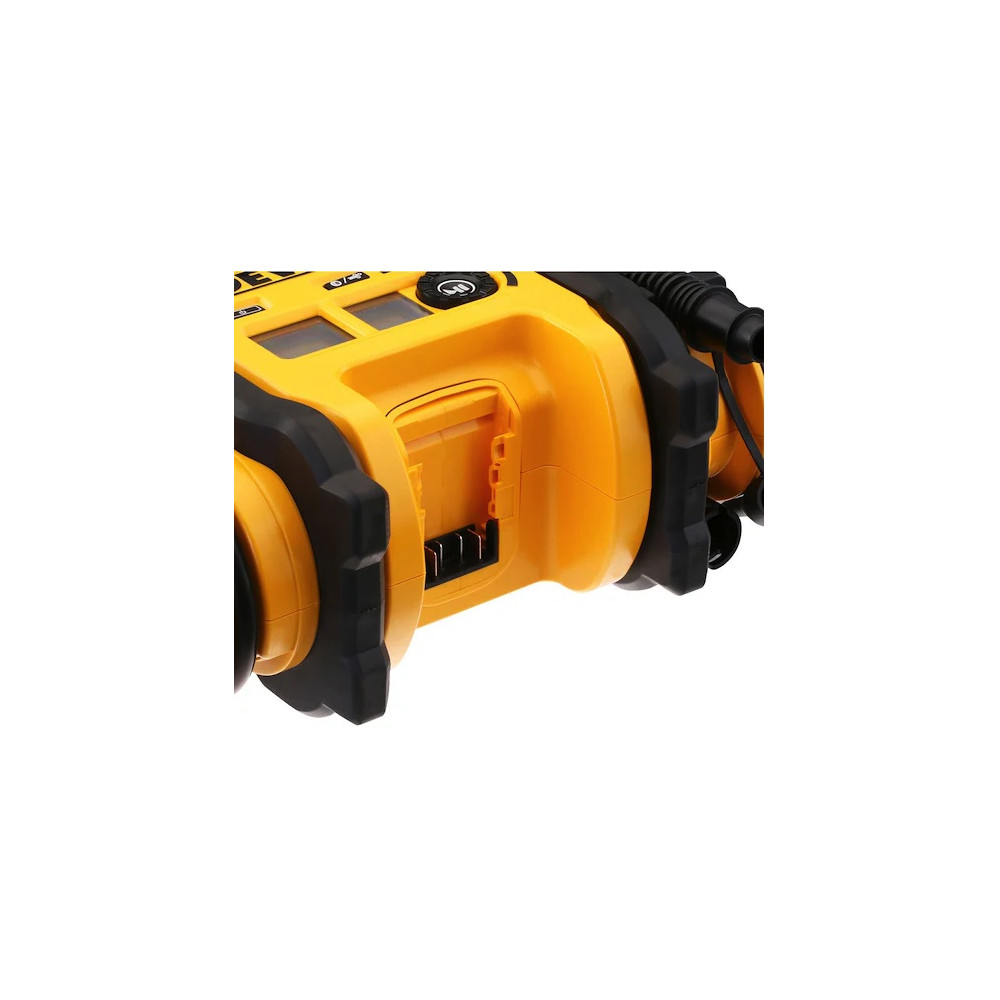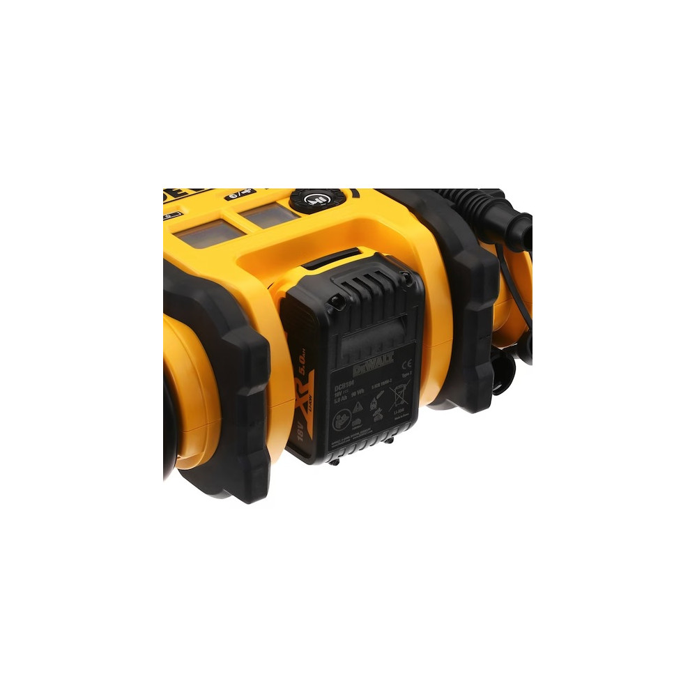 Model DCC018 je kompaktný, vysoko výkonný 18 V kompresor. Model DCC018 je súčasťou produktového radu XR 18 V, je odolný, jednoducho sa používa a zvládne náročné úlohy vďaka vysokému tlakovému výkonu, ktorý ponúka výkon až 14,7 l/min pri tlaku 2,4 BARY. Kompresor DCC018 môže využívať 3 rôzne zdroje napájania: je kompatibilný s naším produktovým radom batérií XR 18 V, má zabudovanú 12 V zástrčku alebo sa môže napájať pomocou 230 V adaptéra (predáva sa samostatne). Model DCC018 je navyše vybavený jasným LED svetlom a možnosťou rýchleho vypustenia vzduchu.