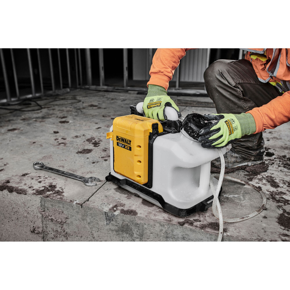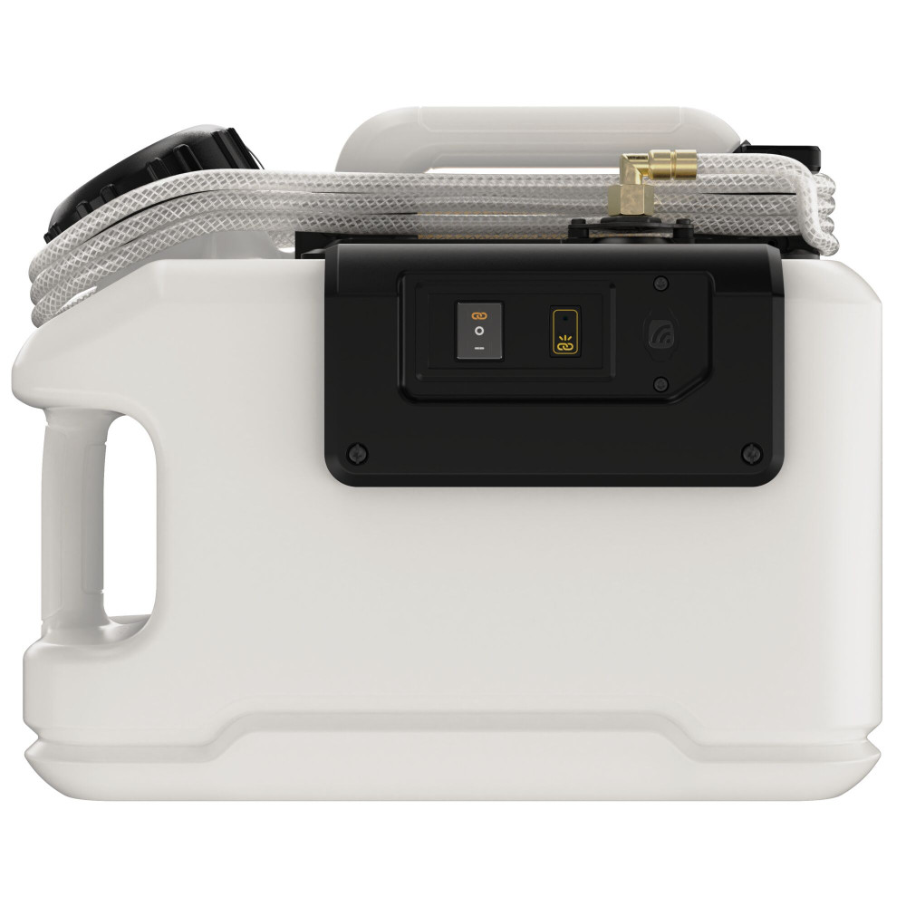 Nádrž na vodu napájaná z 18V batérie poskytuje 15 litrov stabilného prietoku vody bez nutnosti manuálneho natlakovania.
