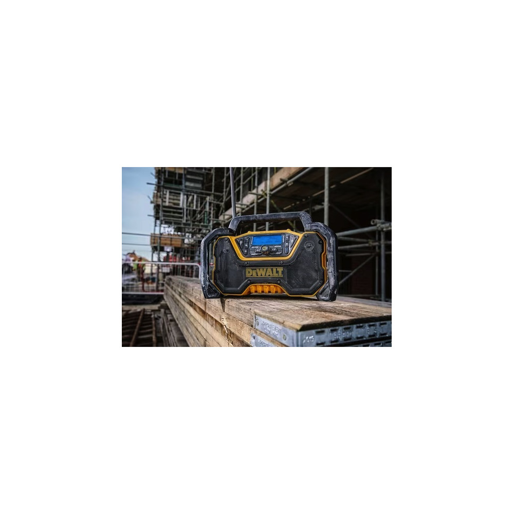 Kompaktné a robustné rádio na pracovisko kompatibilné s 12 V batériami XR, 18 V XR a XR FLEXVOLT®. Prehráva hudbu cez Bluetooth, AUX a rádio DAB+/FM. Model DCR029 je tiež vybavený nabíjacím portom USB a integrovaným rámom proti prevráteniu aj pre tie najnáročnejšie pracoviská.