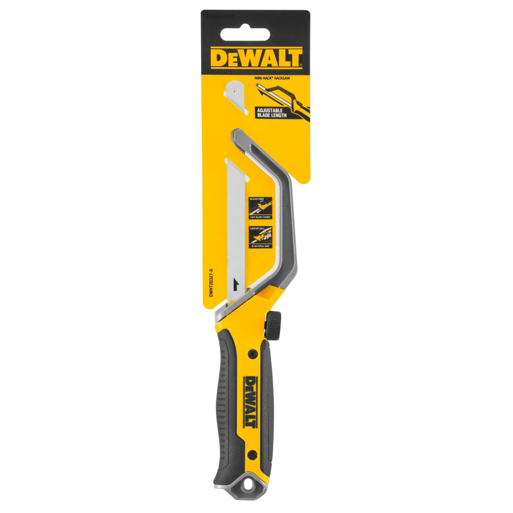 Mini píla DEWALT® s čepeľou 300 mm (12") je vďaka svojej kompaktnej konštrukcii ideálna na rezanie v stiesnených priestoroch. Jej praktické funkcie bez použitia náradia umožňujú používateľovi prepínať medzi čepeľami s dĺžkou 25 cm (10") a 30 cm (12") a nastaviť dĺžku a napnutie čepele otočením kolieska podľa potreby.