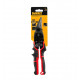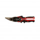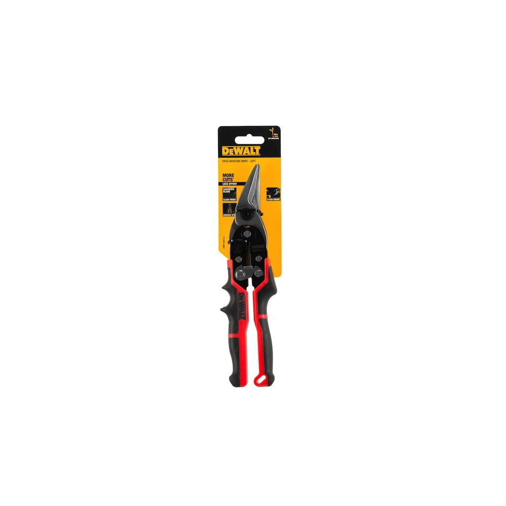 Nožnice DEWALT® Ergo Aviation bol navrhnutý so zníženým rozpätím rukoväte, čo poskytuje nižšiu úroveň svalového úsilia potrebného pri rezaní tvrdých materiálov. Tento nástroj sa tradične používa na rezanie hliníka, vinylových obkladov, tienenia, kartónu, kože, medi a plechu hrúbky 18 až 22. Zúbkovaná rezná hrana nožnice zabraňuje skĺznutiu materiálov počas používania a protišmyková dvojmateriálová podušková rukoväť zaisťuje pevné a pohodlné uchopenie.