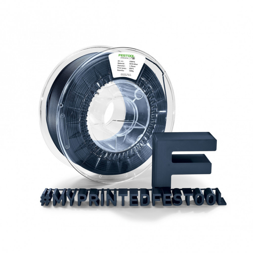 3D tlačový filament Festool modrej farby.