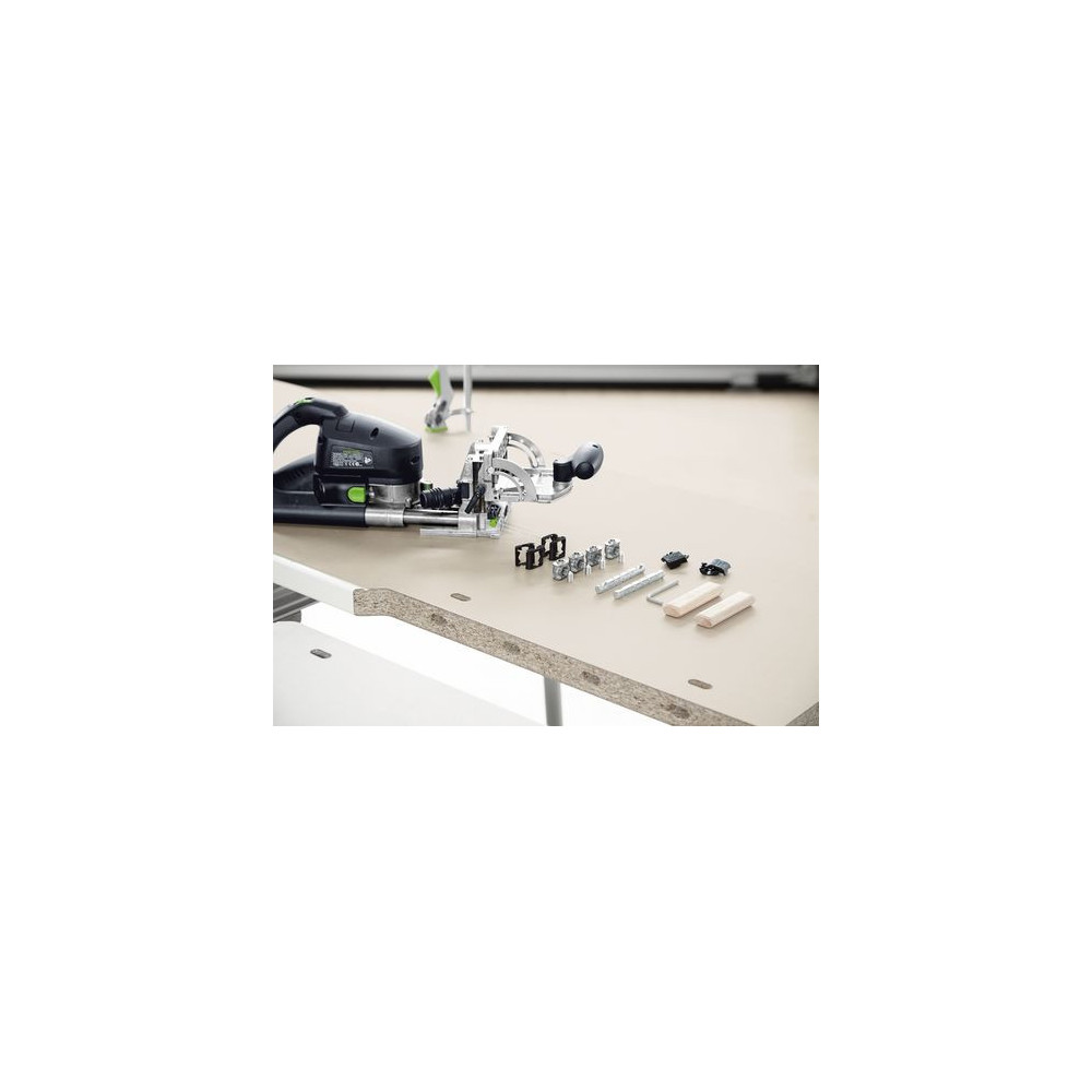 - Systém rohových a plošných spojok pre kolíkovaciu frézku DOMINO XL DF 700 umožňuje stabilné, znova rozpojiteľné spojenia materiálu od hrúbky 30 mm