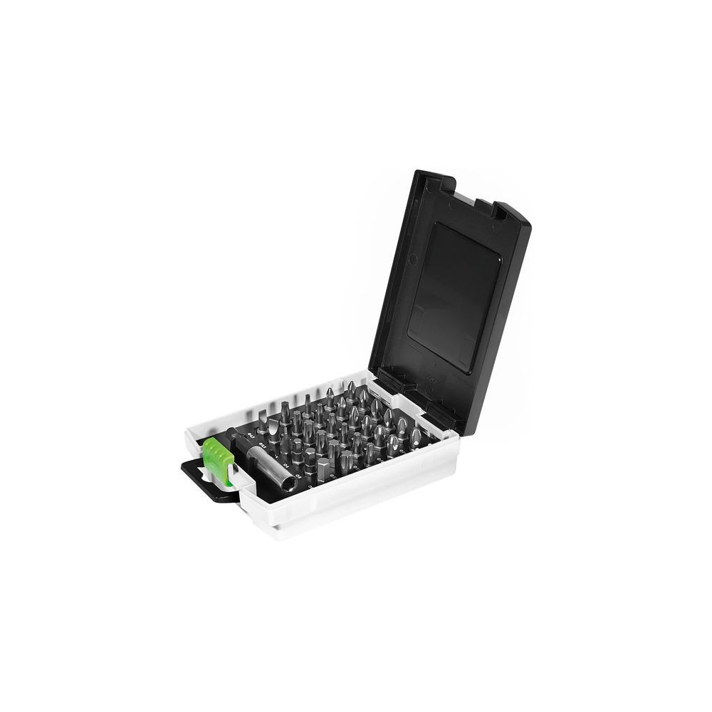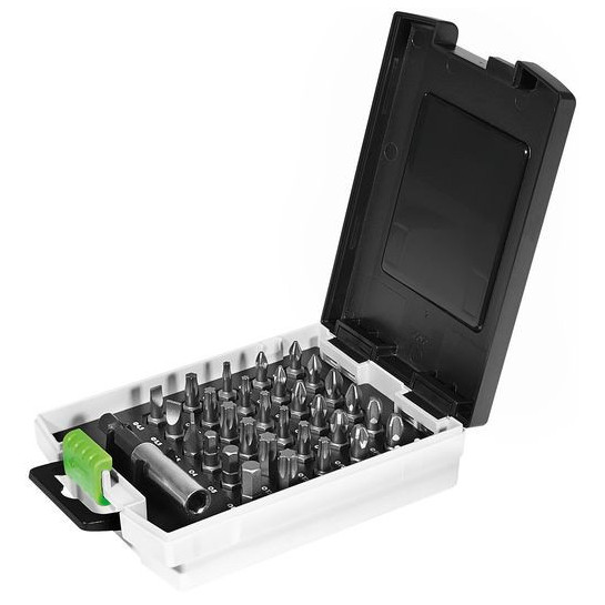 1 magnetický držiak skrutkovacích hrotov 1/4", vždy 1x LS 4,5; LS 5,5; LS 6,5; HEX 4; HEX 5; HEX 6, 2 x skrutkovací hrot TX 10, 2 x skrutkovací hrot TX 15, 2 x skrutkovací hrot TX 20, 2 x skrutkovací hrot TX 25, 2 x skrutkovací hrot TX 30, 2 x skrutkovací hrot TX 40, 2 x skrutkovací hrot PH 1, 2 x skrutkovací hrot PH 2, 2 x hrot PH 3, 2 x skrutkovací hrot PZ 1, 2 x skrutkovací hrot PZ 2, 2 x skrutkovací hrot PZ 3, balenie pre samoobslužný predaj