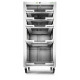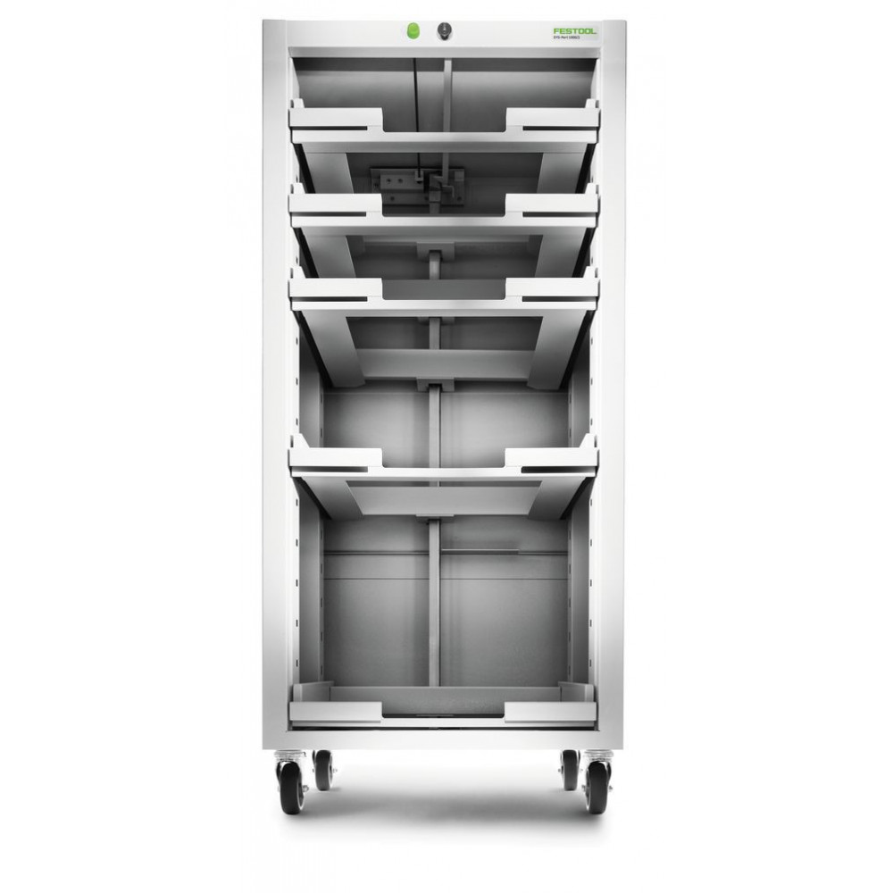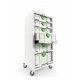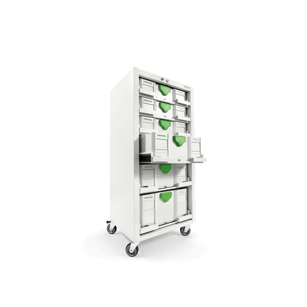 stabilné telo z oceľového plechu, 5 x popisovacích etikiet pre teleskopické regály, s 5 zásuvkami na SYSTAINER, 4 riadiace kolieska s guľôčkovými ložiskami (2 z nich s aretačnou brzdou), v kartónovom obale
