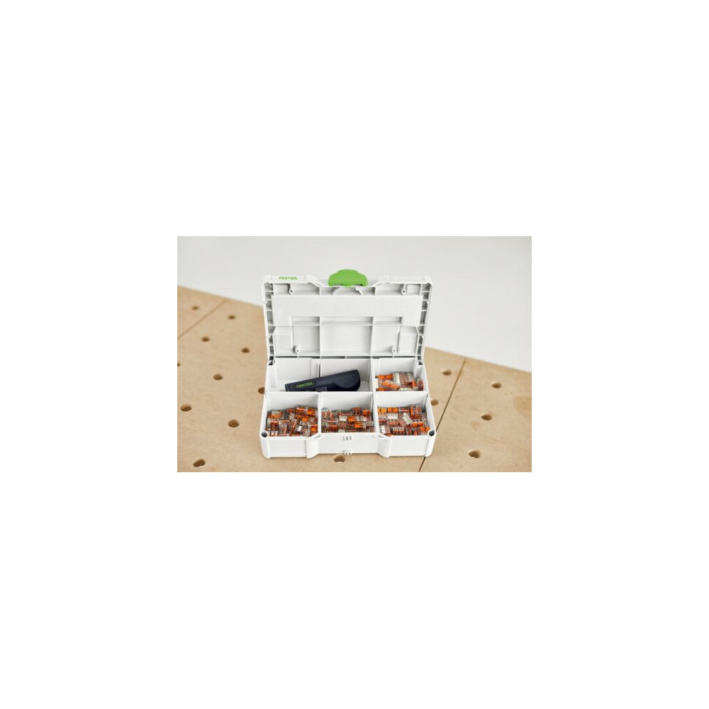 skúšačka napätia, odizolovač káblov, 100 x spojovacia svorka Wago 221-412 COMPACT (2 vodiče), 50 x spojovacia svorka Wago 221-413 COMPACT (3 vodiče), 25 x spojovacia svorka Wago 221-415 COMPACT (5 vodičov), Systainer³ SYS3 S 76, v kartónovom obale