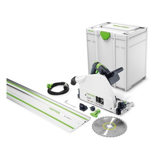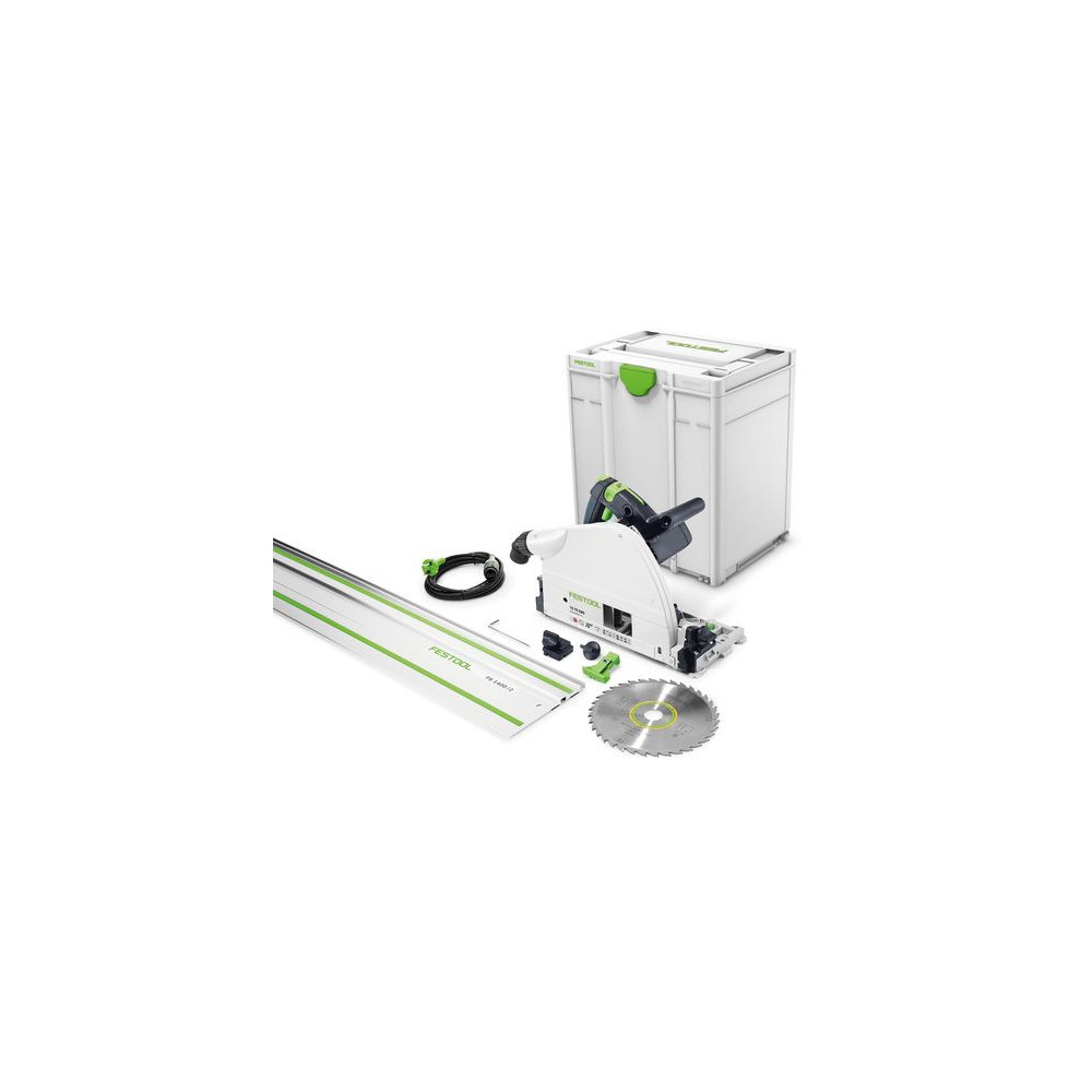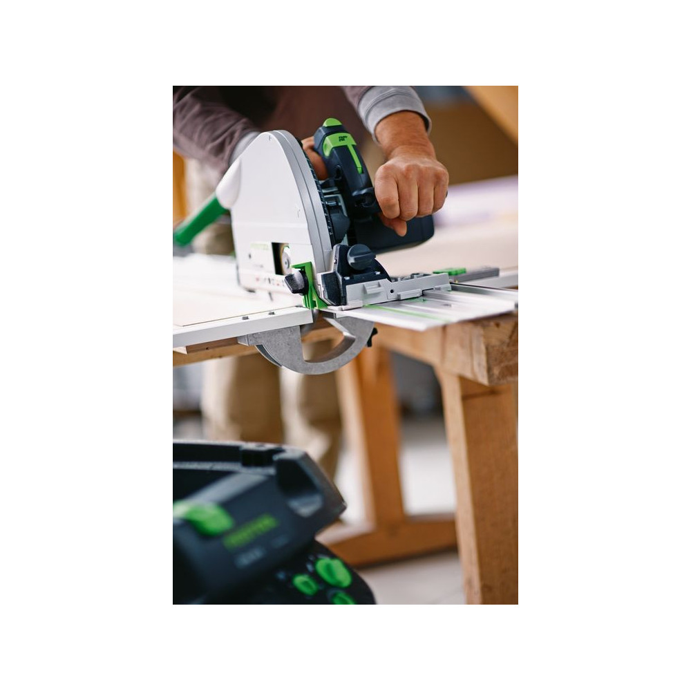 pílový kotúč do okružnej píly WOOD UNIVERSAL HW 210×2,4×30 W36, doraz proti spätnému rázu FS-RSP, chránič proti vytŕhaniu materiálu, inbusový kľúč SW 5, vodiaca lišta FS 1400/2, Systainer SYS3 M 437