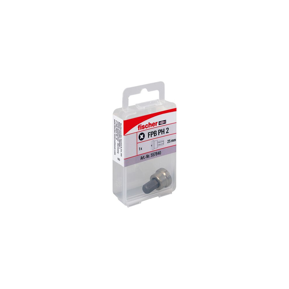 Profesionálny bit na sadrokartón fischer ProfiBit FPB je robustný a výkonný bit s hlavou Phillips PH 2 a pre sadrokartónové aplikácie skrutkami do sadrokartónu. Použitie vysokokvalitnej špeciálnej ocele s vysokým stupňom tvrdosti okolo 60 HRC zaisťuje dlhú životnosť. fischer ProfiBit je odolný proti opotrebovaniu.