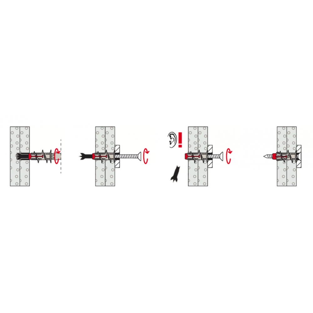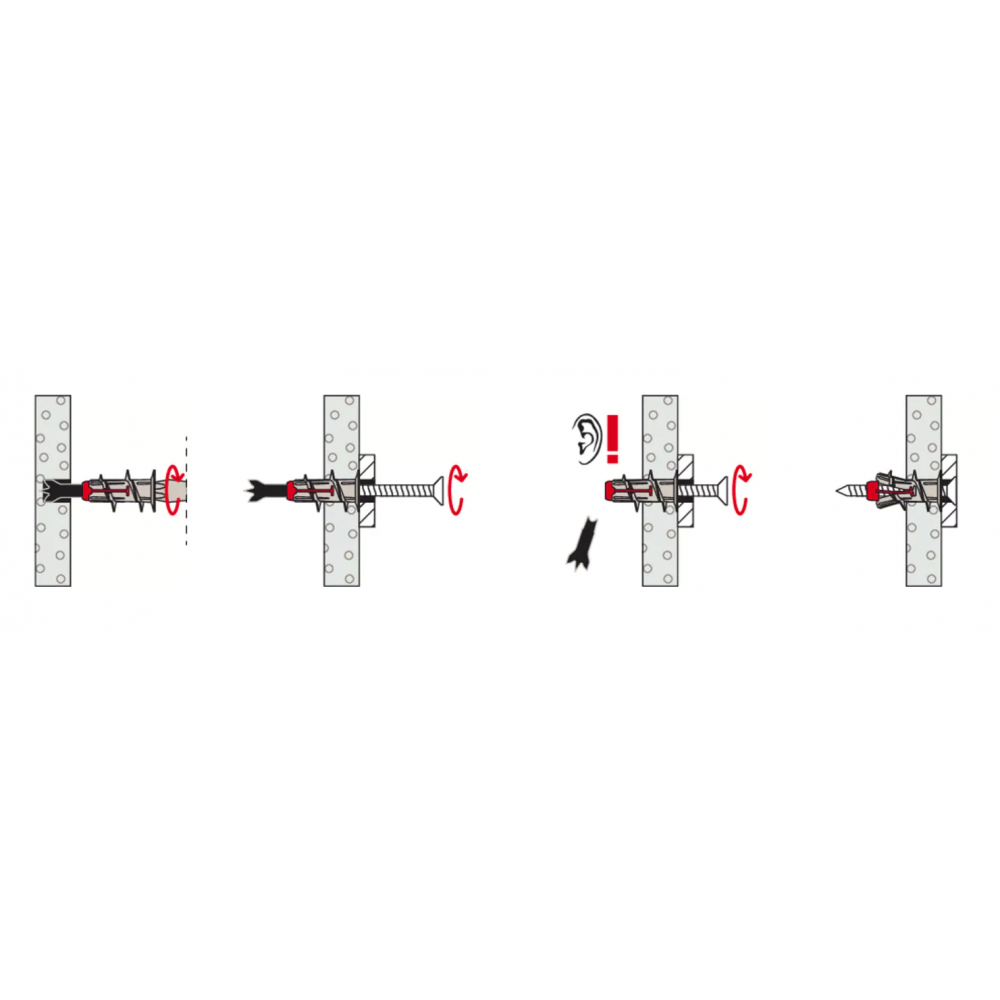 Fischer DuoBlade je samorezná hmoždinka pre ľahké upevnenie do sadrokartónu. Pevná konštrukcia sa skladá z viacerých častí, vďaka ktorým má kotva vyšší výkon a funguje spoľahlivejšie. Samorezný kovový hrot odbúrava potrebu prevrtávania otvoru a čisto a presne pripraví cestu pre osadenie hmoždinky. Hmoždinka je určená pre predsadenú montáž pomocou skrutkovača, ale lepšie pomocou aku skrutkovača. Zavŕta sa do roviny s povrchom sadrokartónovej steny. Hmoždinka sa najlepšie používa so skrutkami do dreva alebo do plechu o priemere od 4 do 5 mm alebo tiež so závitovými okami, skobami a hákmi. Fischer DuoBlade sa vynikajúco hodí na upevňovanie požiarnych hlásičov, garniží, záclonových tyčí alebo žalúzií, avšak pozor - nemali by ste prekračovať garantovanú únosnosť.