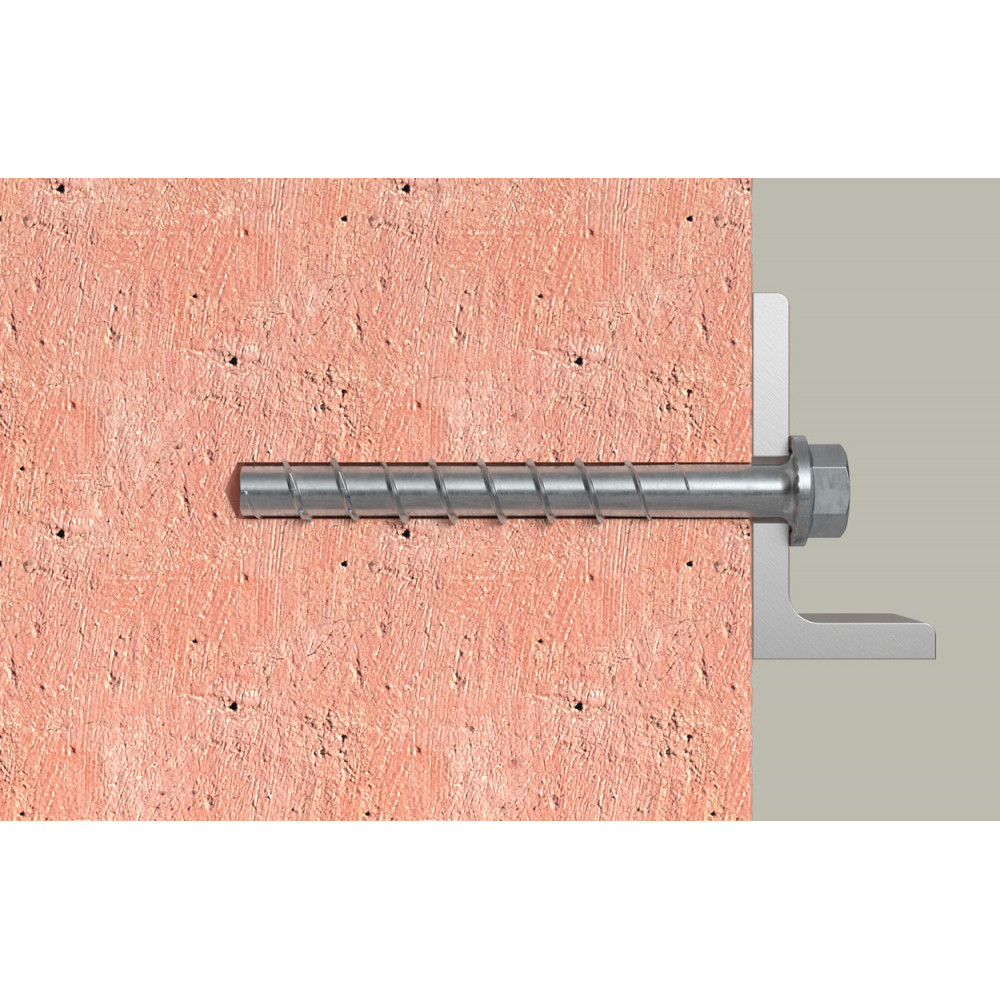 Fischer skrutka do betónu ULTRACUT FBS II je výkonný kotevný prostriedok vyznačujúci sa výnimočne jednoduchou montážou. Vďaka špeciálnemu tvaru závitu rýchlo preniká do kotevného podkladu. Pri vŕtaní do stropu a do podlahy nie je nutné čistenie vyvŕtaného otvoru. Skrutku je možné d použiť na viacnásobné dočasné upevnenie. Ku montáži odporúčame použitie rázového uťahováku s priemyselnou hlavicou alebo špeciálnym bitom TORX. Skrutka do betónu je ideálne na upevnenie zábradlí, ochranných protinárazových bariér, podpôr debnení a pod.