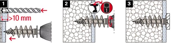 Osadením hmoždinky len do izolačného materiálu je možné kotvené diely montovať bez tepelných mostov.