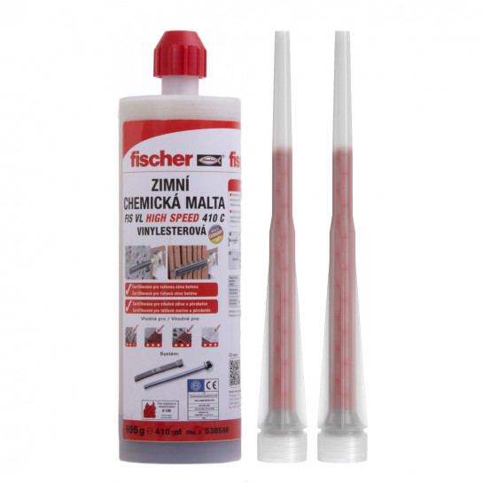 - Injektážna maltu na báze vinylesteru je možné aplikovať do vlhkých otvorov a otvorov so stojatou vodou (len kartuše 410 ml), čo urýchľuje postup práce.