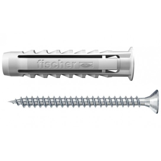 Vďaka štvornásobnému rozloženiu fischer Plug SX optimálne odvádza sily do stavebného materiálu. Okrem typického rozotierania zaručuje pri výrobe použitý kvalitný nylon aj spoľahlivé a dlhotrvajúce uchytenie. Okraj pripevnený k hlave zabraňuje vkĺznutiu hmoždinky do vyvŕtaného otvoru. Dodávané skrutky A2 sú presne prispôsobené fischer Plug SX. To zaručuje dokonalé uchytenie.