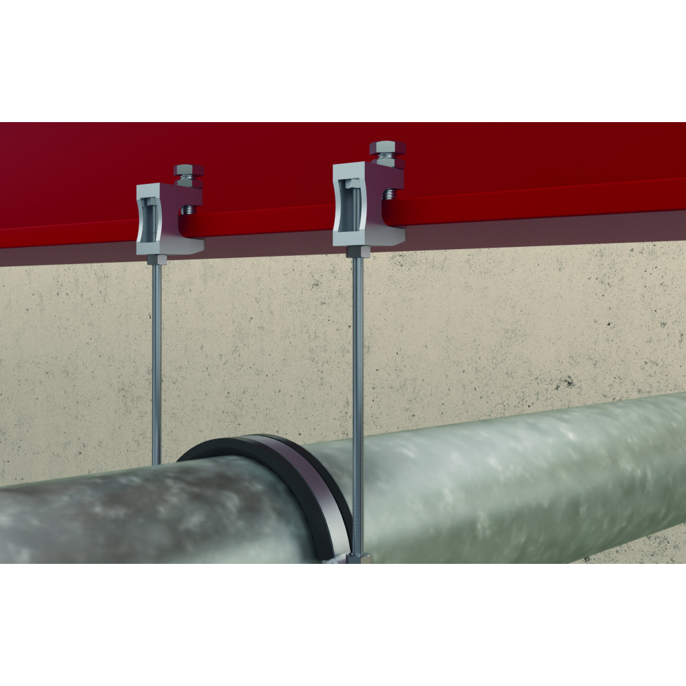 Fischer nosníková príchytka TKL M8 so závitovým otvorom je vhodná pre kotvenie k oceľovým nosníkom. Na upevnenie potrubí s DN vyšším ako 65, v súlade s VdS je potrebné použiť príložku. Drážka na konci skrutky zabraňuje vyšmyknutiu príchytky z nosníku.