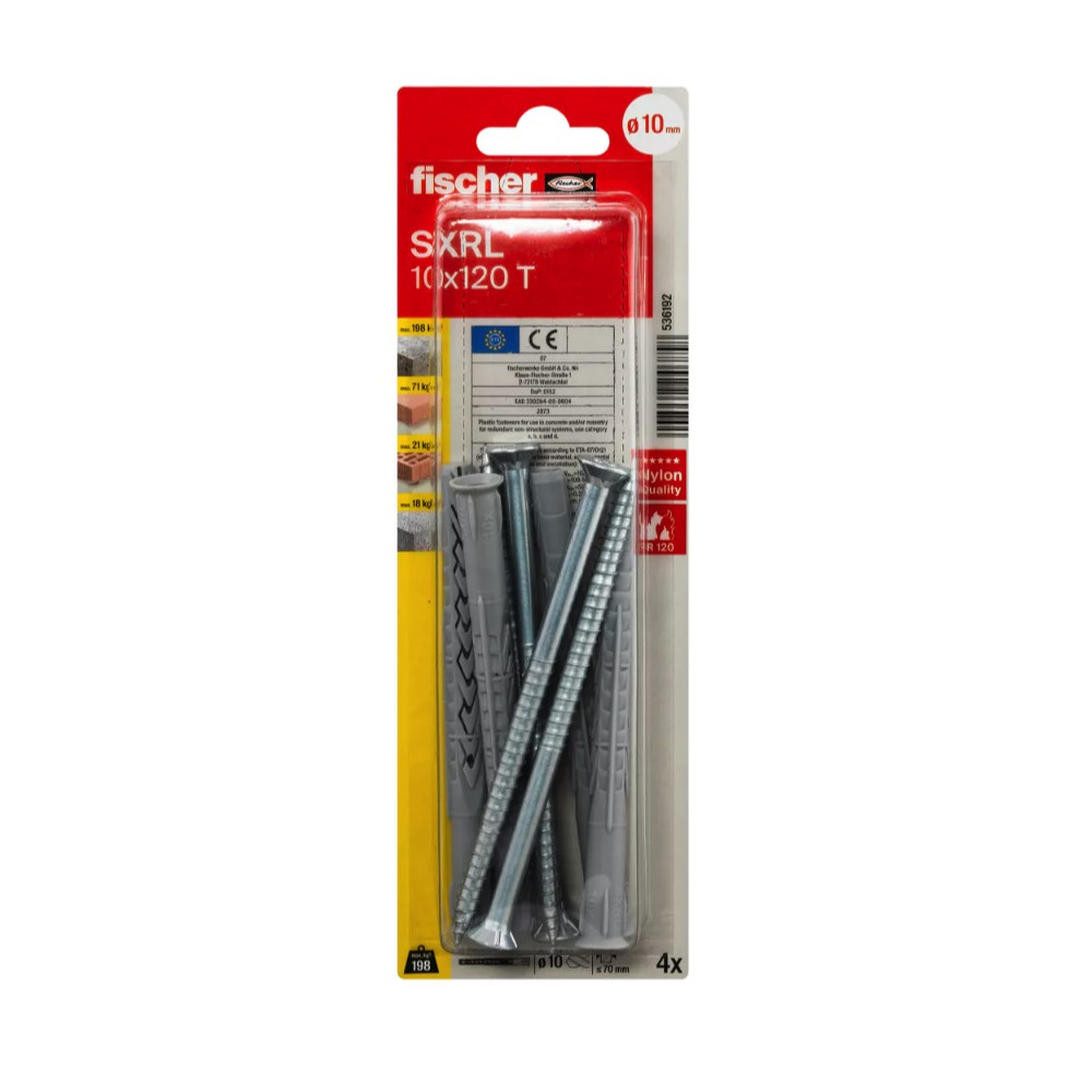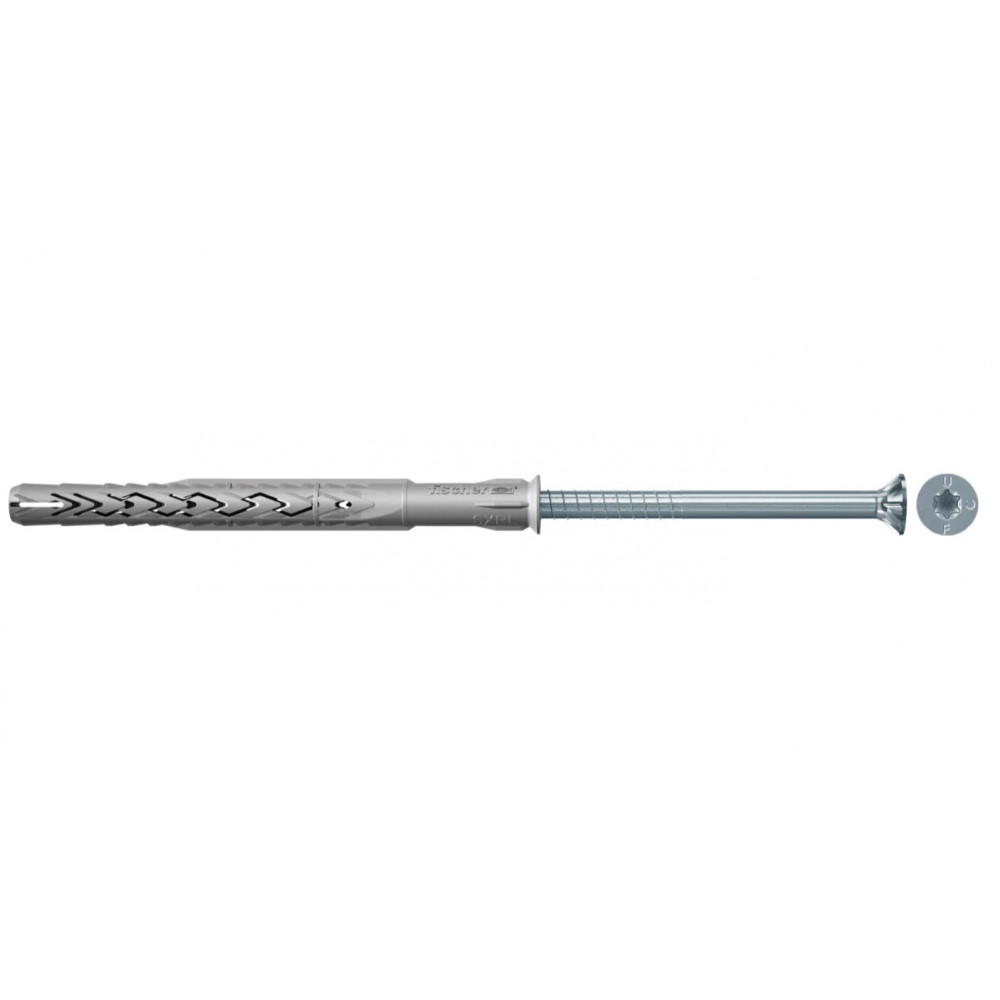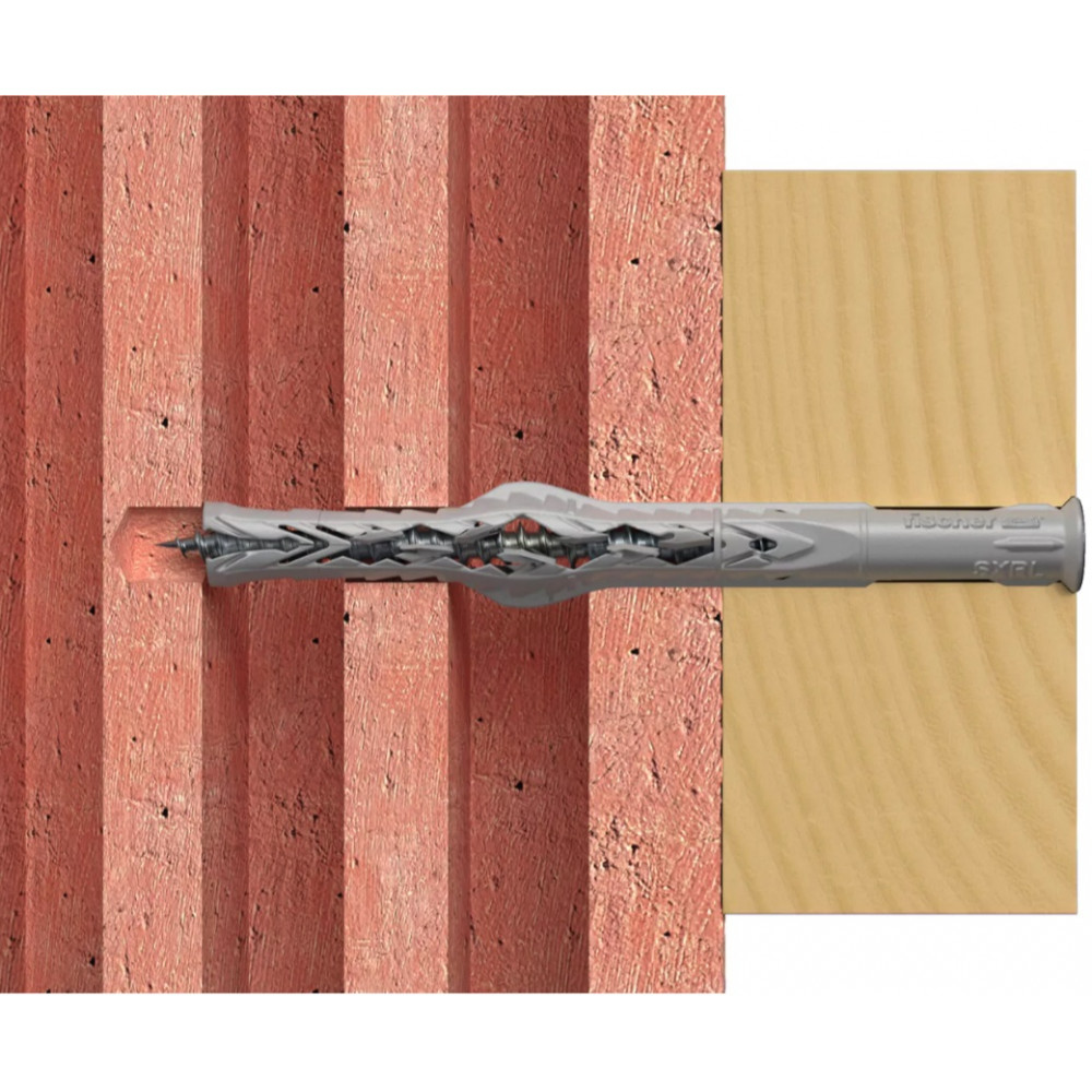 Fischer rámová hmoždinka SXRL-T so skrutkou s zápustnou hlavou a drážkou TORX 40 je schválená na viacnásobné upevnenie nenosných systémov do plného a aj dutinového muriva, betónu a plynosilikátu. Dve rozperné zóny prenášajú zaťaženie priamo do muriva a betónu, pri použití do plynosilikátu sa sformuje do jedného expanzného prvku. fischer rámová hmoždinka SXRL s galvanicky zinkovanou bezpečnostnou skrutkou je vhodná na upevnenie okenných rámov, vešiakov, nástenných políc alebo držiakov TV v interiéri.