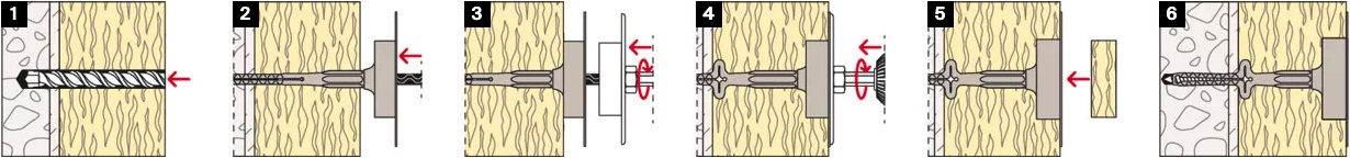 - Zápustná montáž a prikrytie hmoždinky viečkom vedie ku jednoliatemu povrchu izolačnou vrstvou a následne ku ľahkému brúseniu a spraveniu stierky.