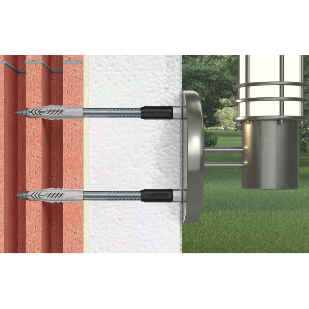 Izolačný systém pre predsadenú montáž fischer TherMax 10 je riešenie pre upevnenie do vonkajších stien bez tepelného mosta v izolácií. Aplikačná skrutka s plastovým kužeľom vystuženým skleneným vláknom sa zafrézuje s tvarovým zámkom do izolácie. Pri montáži sa aplikačná skrutka otáča do univerzálnej hmoždinky UX a tým je ukotvená v stavebnom materiáli. Plastový protichladový kužeľ na špičke aplikačnej skrutky vytvára tepelnú bariéru a drží vonkajšie upevnenie. TherMax fixuje v betóne, pórobetóne a murive z pevných a dierovaných tehál ľahké záťaže ako svetlá, poštové schránky alebo bleskozvody.