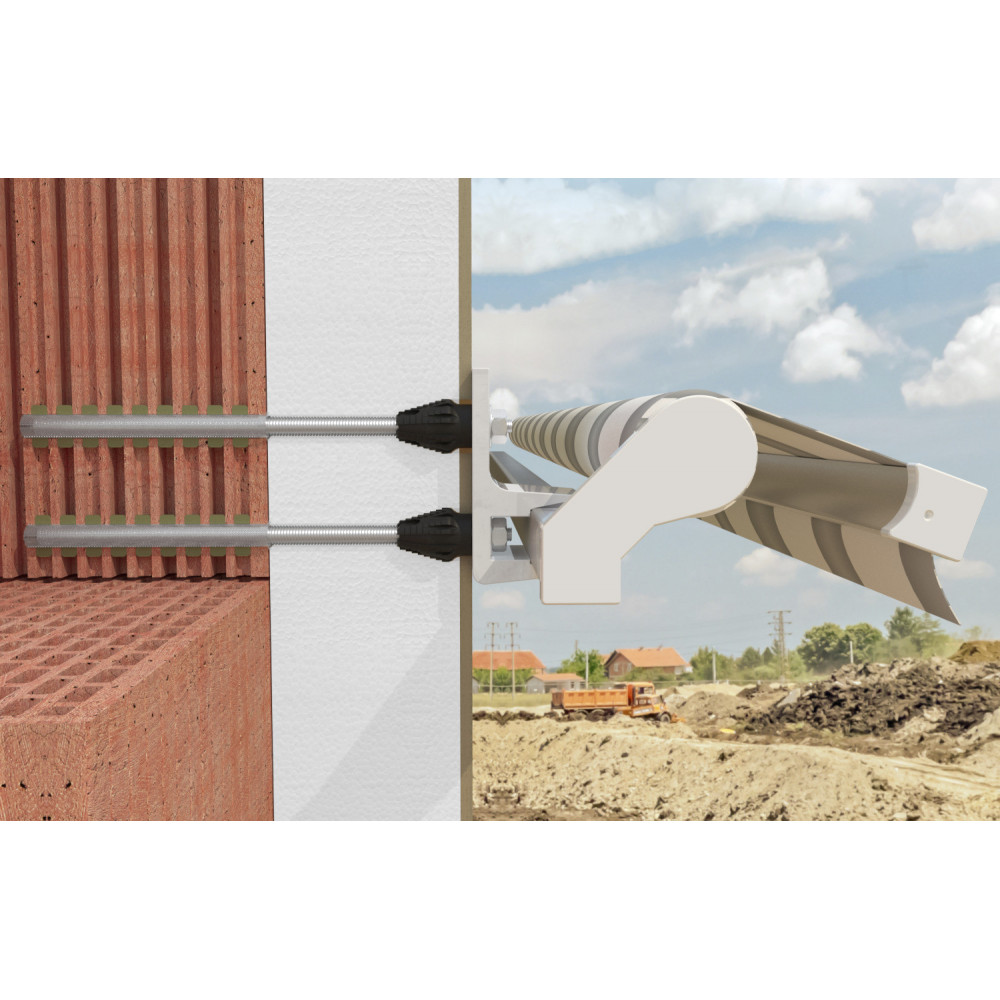 - Plastový kužeľ preruší tepelný most medzi kotveným prvkom a vnútorným kotevným podkladom a umožňuje energeticky optimalizovanú montáž.