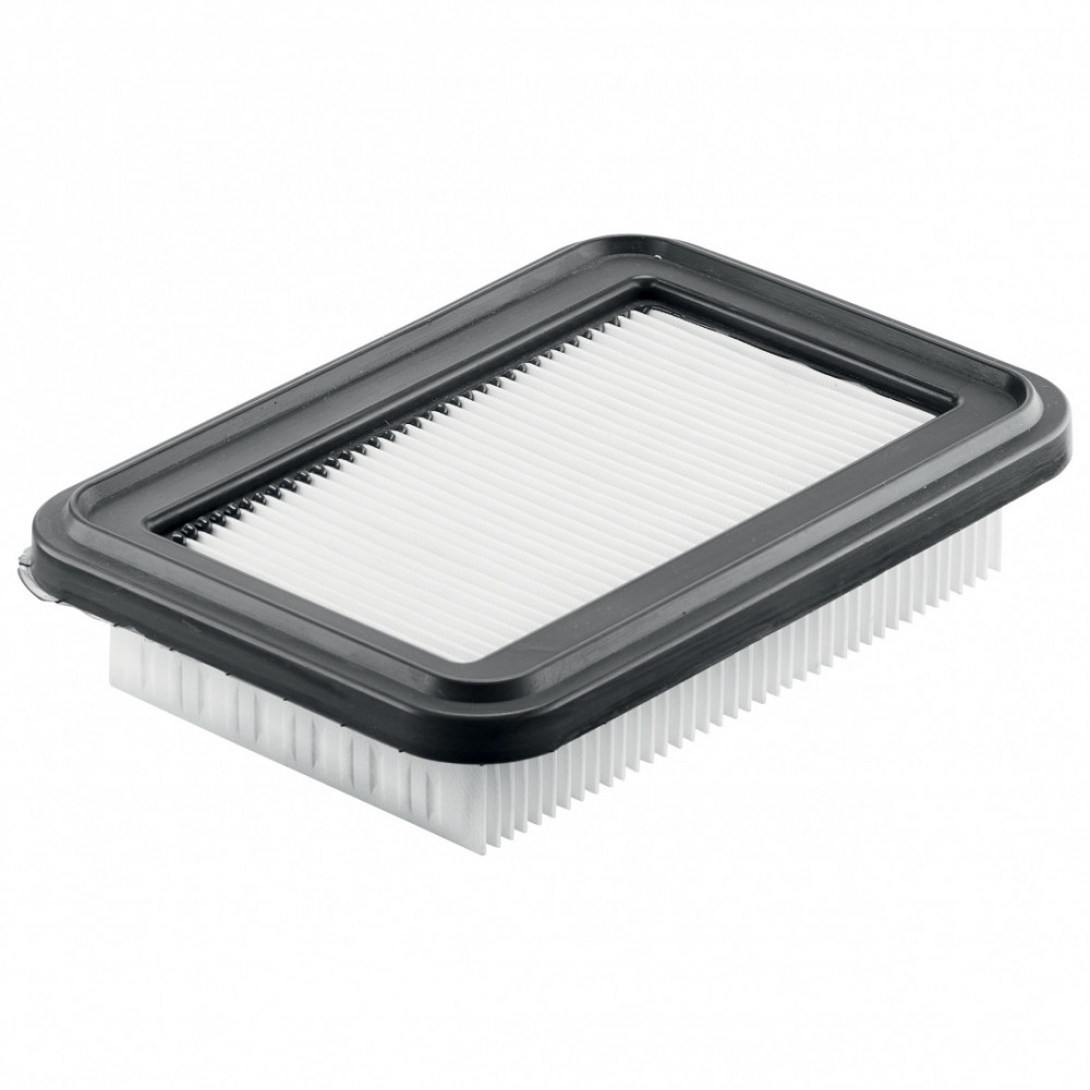 PES plochý skládaný filtr, Filtr s nano/teflonovou vrstvou třídy M, použitelný také pro vysavače třídy L a H. Dlouhá životnost díky kvalitnímu materiálu PES-filtru. Povrch, odpuzující nečistoty zlepšuje čištění filtru, póry filtru se lehce zbavují prachu. Lehce čistitelné, dlouhá životnost, vhodné rovněž pro práce za mokra.