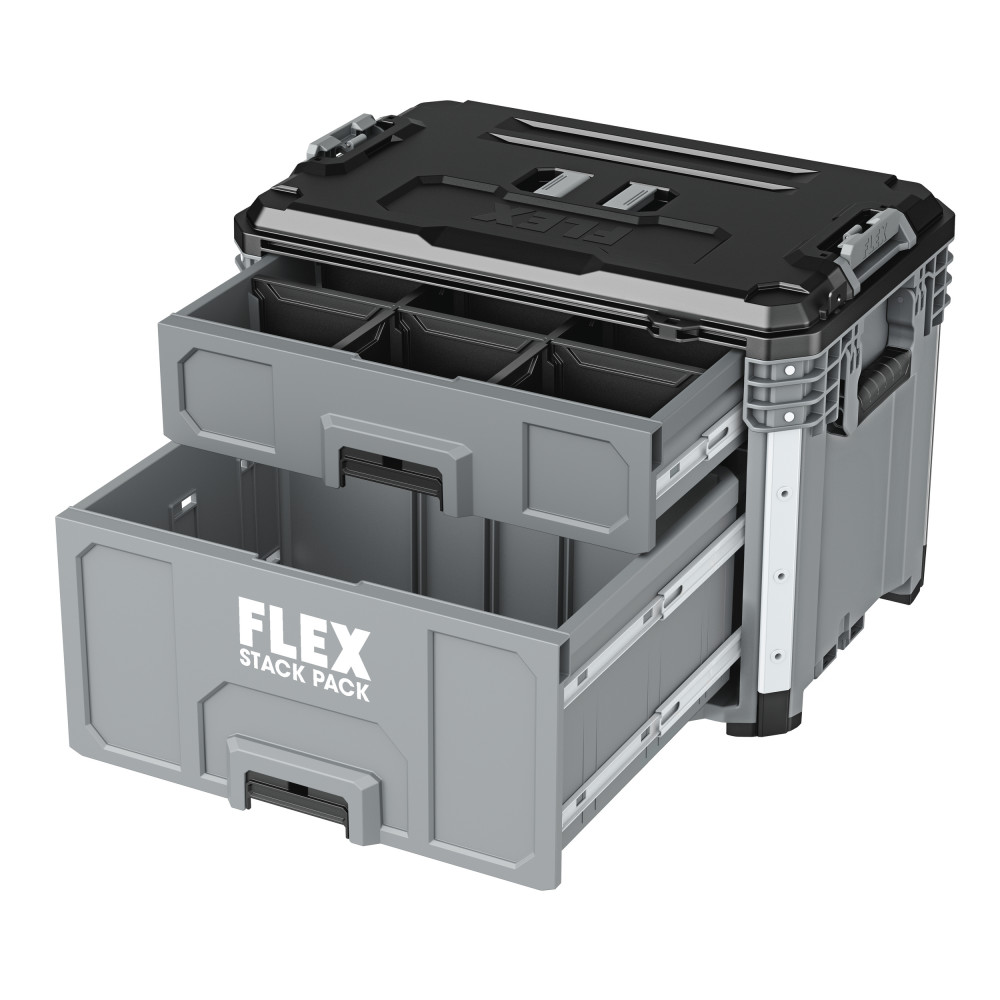 S robustním skladovacím a transportním systémem STACK PACK lze nářadí a příslušenství snadno přepravovat na stavbu.