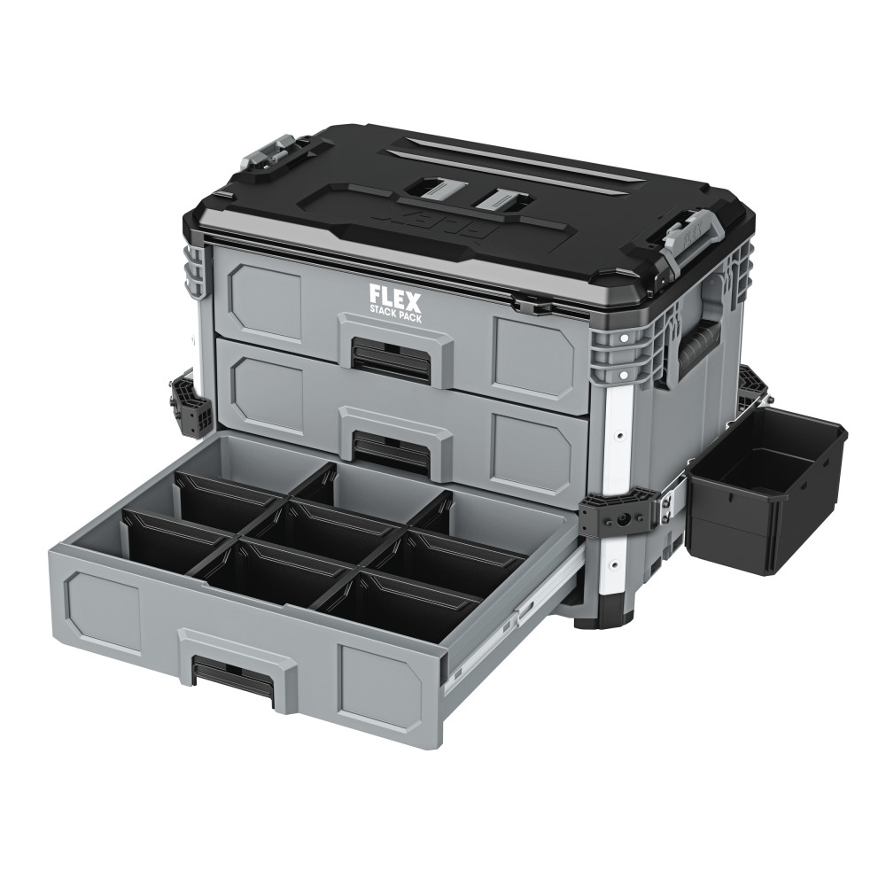 • S robustním skladovacím a transportním systémem STACK PACK lze nářadí a příslušenství snadno přepravovat na stavbu.