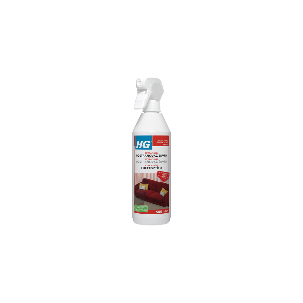 HG extra silný odstraňovač škvŕn je okrem iného posilnený aktívnym kyslíkom, vďaka čomu je schopný výrazne uľahčiť čistenie škvŕn a cielene odstrániť aj tie najodolnejšie škvrny od červeného vína, kávy, čokolády, omáčky, rúžu, krému na topánky, ovocnej šťavy, tuku a podobne, napríklad aj z kobercov, poťahov nábytku či autopoťahov. Vďaka aktívnemu kyslíku už nie sú problémom ani hlboké vsiaknuté škvrny.