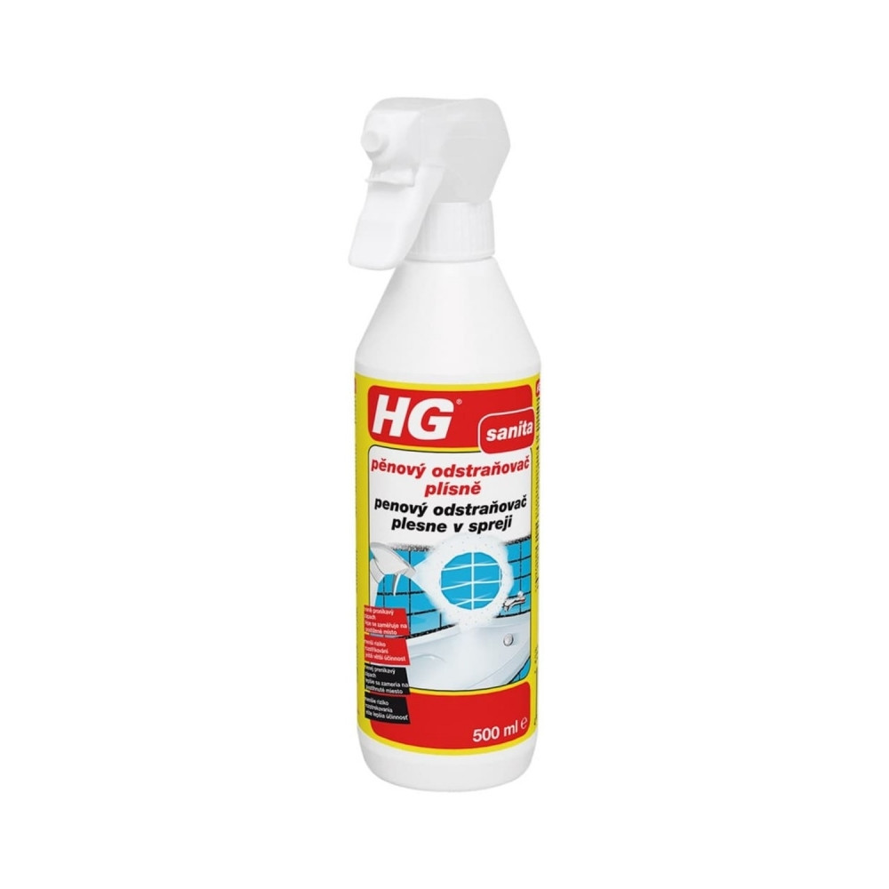 HG penový odstraňovač plesne v spreji ničí pleseň na vlhkých miestach v interiéri aj exteriéri. Vďaka unikátnemu zloženiu má pena menej prenikavý zápach, aplikácia sprejom umožňuje lepšie zameranie na postihnuté miesto a riziko rozstrekovania je menšie. Okrem toho pena má navyše schopnosť dlhšie sa udržať na povrchu, čím zaistí ešte lepšie a dlhodobejšie pôsobenie. Vhodný na obklady a štukové steny (aj mramor a iné druhy prírodného kameňa), škáry v kúpeľni, v sprche, na toalete, v kuchyni, pivnici, suteréne, saune, bazéne, garáži, v kôlni. Vyčistí aj fasádu, balkón, kvetináče, záhradné sochy a podobne.