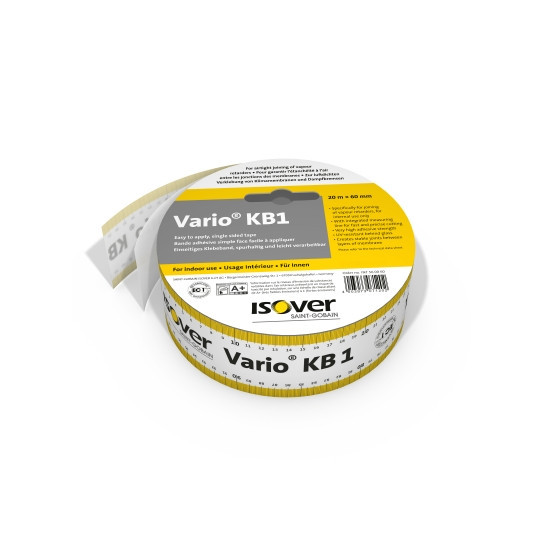 ISOVER VARIO KB1 je jednostranná lepiaca páska určená na vzájomné lepenie pásov fólie VARIO® KM DUPLEX, vhodná na použitie v interiéri.