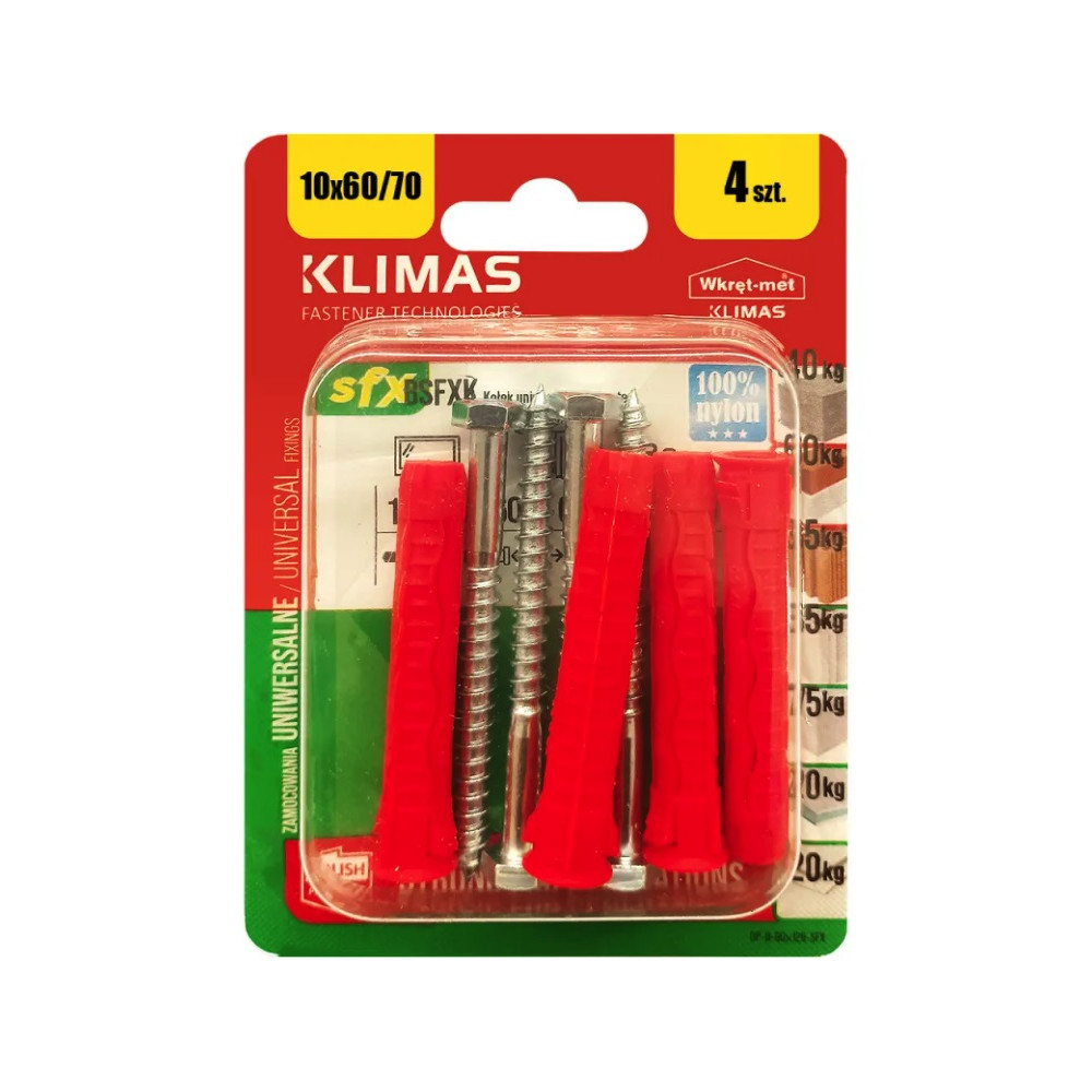 KLIMAS Hmoždinka uzlovacia so skrutkou s 6HR hlavou SW10 10x60/70mm (4ks)