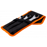 Plastový držiak s kombinovaným račňovým kľúčom s metrickou otočnou hlavou.