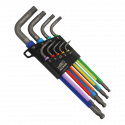 Sada obsahuje:9 x farebné imbusové L-kľúče dlhé TORX® (8, 9, 10, 15, 20, 25, 27, 30, 40 mm)