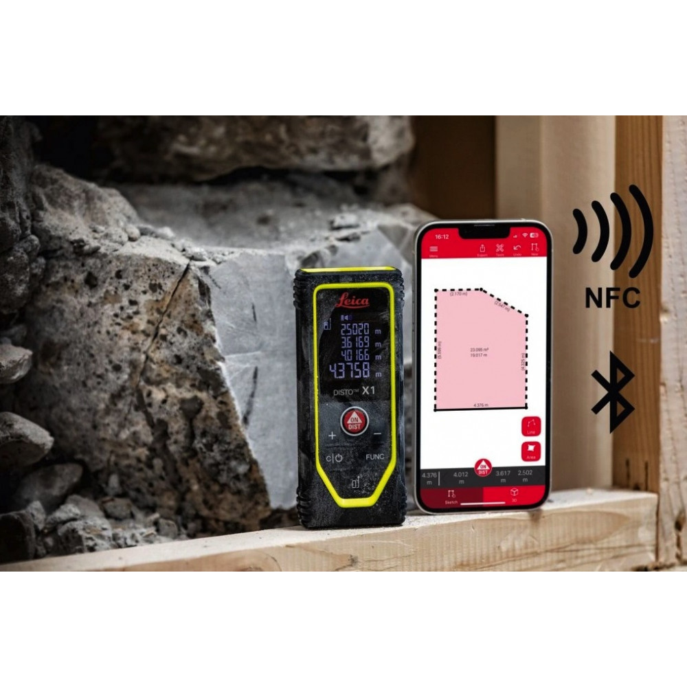 ![]() | Dokumentujte a vizualizujte NFC – zjednodušené a efektívne pripojenie. Leica DISTO X1 ponúka zjednodušené pripojenie k aplikácii DISTO Plan cez NFC, čím eliminuje potrebu procesu párovania. Jednoduchým priložením zariadenia k smartfónu môžu používatelia okamžite prenášať namerané hodnoty. Toto NFC pripojenie umožňuje rýchle a efektívne interakcie, čím zvyšuje pohodlie a efektivitu používateľa. Okrem toho je možné dáta prenášať aj pomocou Bluetooth, čo poskytuje flexibilné možnosti pre bezproblémovú komunikáciu medzi zariadeniami. |