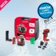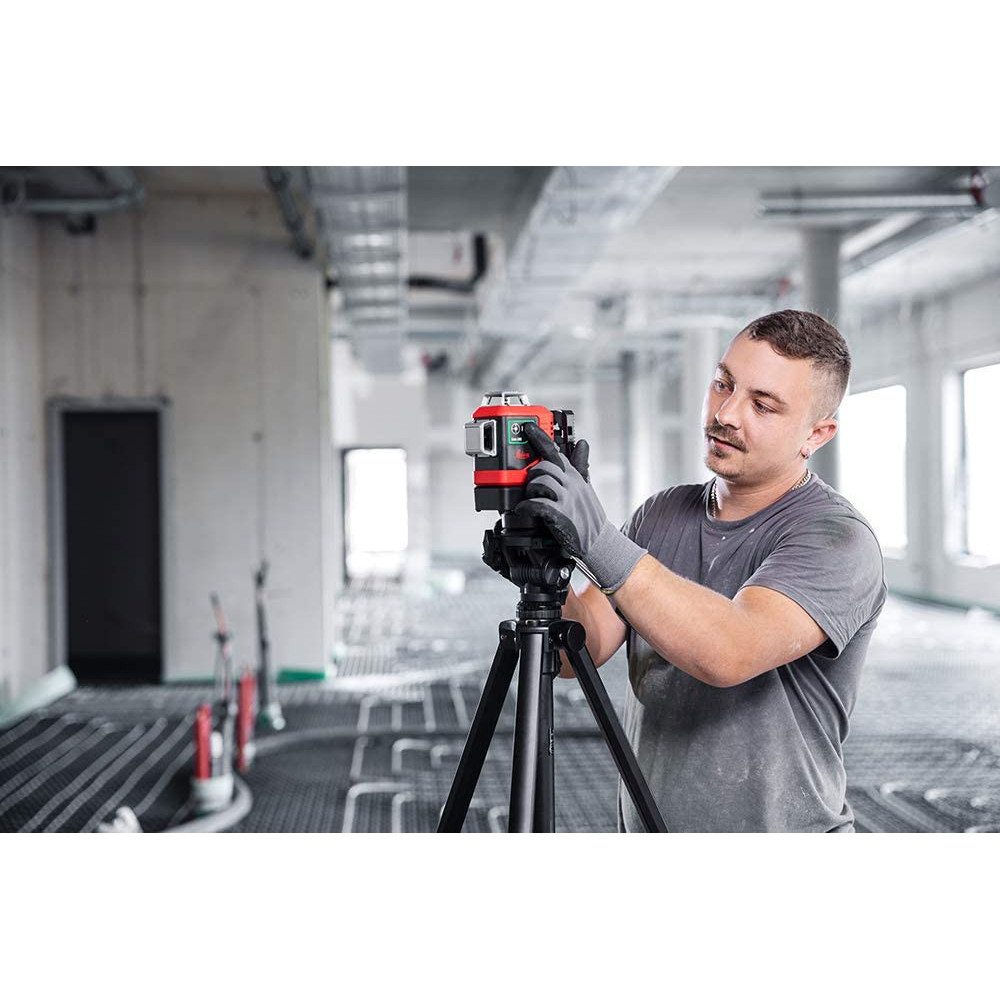 3D multikrížový zelený laser - 2 x 360° vertikálna a 1 x 360° horizontálna čiara, základňa otočná o +- 10°, zelený lúč s extra zvýšenou svietivosťou oproti iným laserom, regulácia sily lúča, dodáva sa spolu s zeleným terčíkom, Li-Ion batéria, nabíjačka, držiak AA batérií, magnetický držiak TWIST 250, výškovo nastaviteľný držiak UAL 130, kufor.