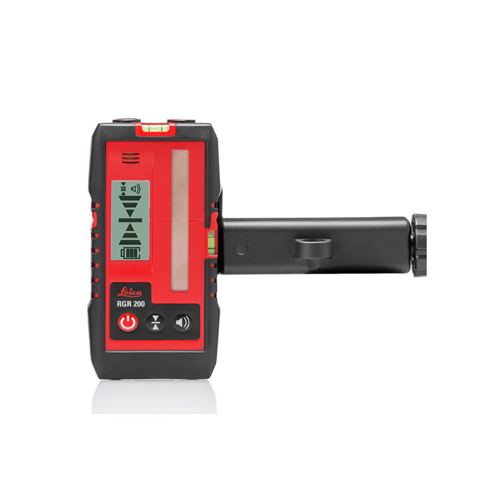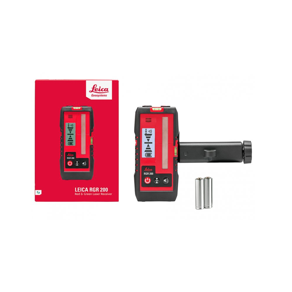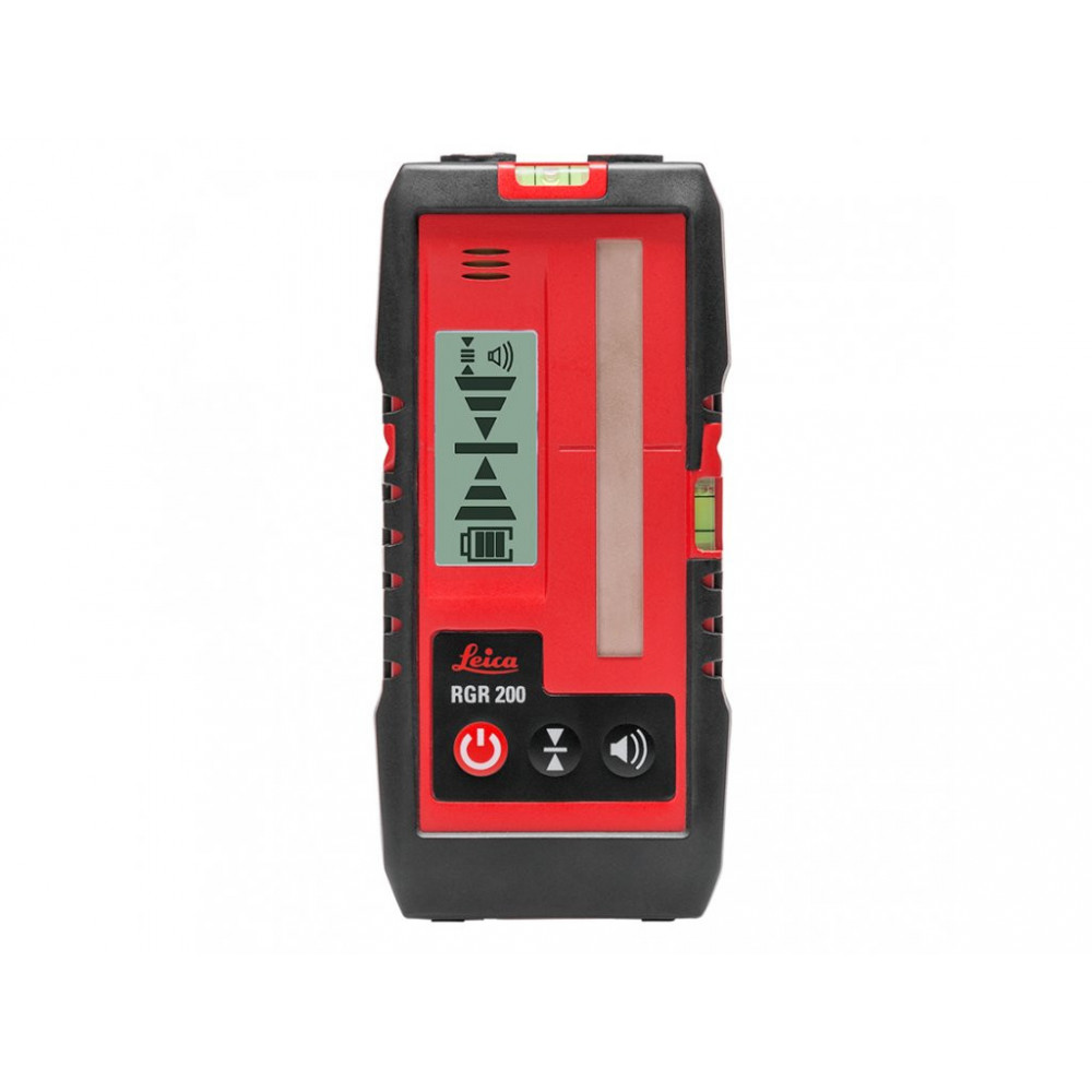 Leica RGR 200 je unikátny prijímač pre krížové lasery, ktorý dokáže detektovať laserovú líniu červeného aj zeleného krížového lasera. Pracovný dosah do 80 metrov, výška snímača: 85 mm, displej: na oboch stranách, podsvietený, odolnosť: IP65, napájanie: 2xAA batéria