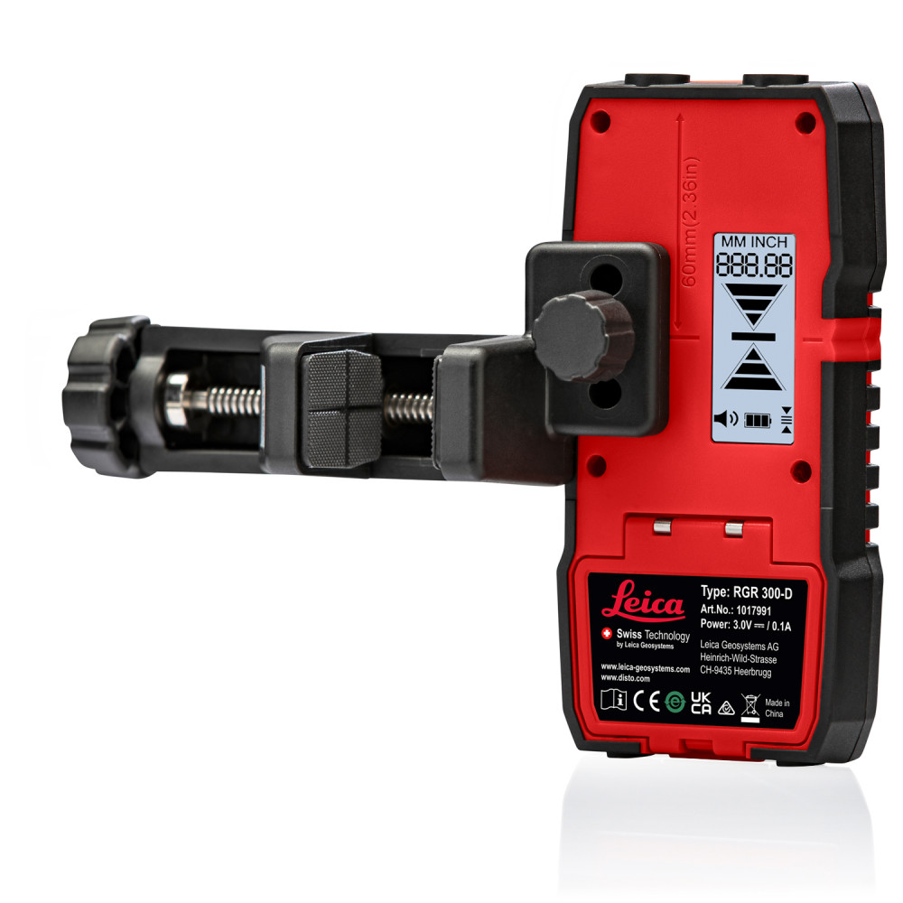 Leica RGR300-D – S digitálnym odčítaním. Prijímač pre krížové lasery je prístroj, ktorý vďaka zabudovanému snímaču laserovej frekvencie dokáže detekovať polohu laserového lúča aj vtedy, ak je pre ľudské oko neviditeľný. Práve viditeľnosť lasera je najväčšou slabinou laserovej meracej techniky, pretože je jedno aký laser máte, na priamom slnku ho voľným okom neuvidíte. Prijímač Leica RGR 300-D má na hornej strane 2 silné magnety, pomocou ktorých prijímač jednoducho upevníte na kovové konštrukcie, čo je užitočné najmä pri konštrukciách sadrokartónových stropov a podhľadov. Prijímač má navyše aj dve presné libely, pre čo najpresnejšie zarovnanie prístroja v horizontálnej aj vertikálnej polohe.