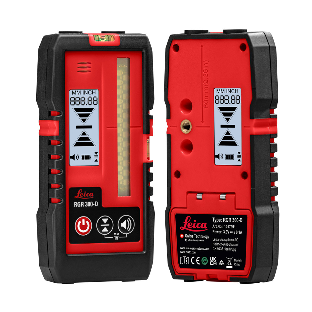 Leica RGR 300-D je jediný prijímač na trhu, ktorý dokáže detekovať laserové čiary z červeného aj zeleného lasera. Ak používate červený aj zelený krížový laser, tak nemusíte kupovať dva prijímače, stačí ak budete mať RGR 300-D.