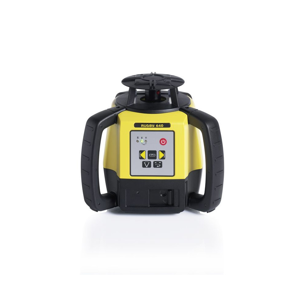 Rotačný laser RUGBY 640 je samourovnávací, pracuje v horizontálnej aj vertikálnej rovine a umožňuje vytyčovanie sklonov v dvoch osiach jednotlivo alebo súčasne. Naviac disponuje funkciou skenovania, 90° skenom a má aj laserovú olovnicu.