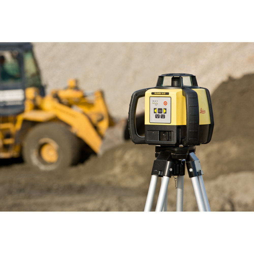 Leica Rugby 640 je červený horizontálny a vertikálny rotačný laser s presnosťou nivelácie ±2.2 mm na 30 m, dosahom 800-1100 m. Umožňuje nastavovať sklony v dvoch osiach, má nastaviteľnú rýchlosť otáčok a funkciu skenovania.