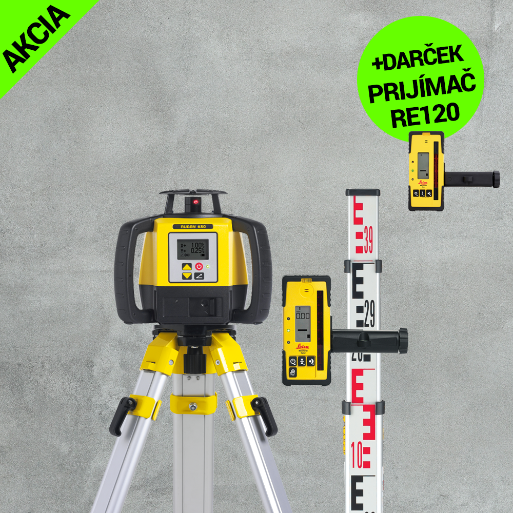 V sete teraz získate okrem statívu a nivelačnej 5m laty aj prijímač Rod Eye 160 s držiakom, Li-Ion batériu s nabíjačkou a odolný kufor.